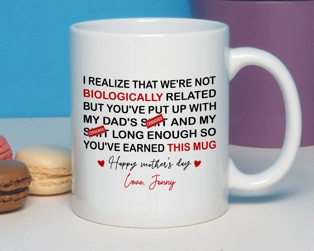 Personalized Stepmom Gift Mug Bonus Mom Coffee Mug Stepmom Appreciation Mug Product Details.. This high quality 11oz. ceramic white mug has a premium hard coat that provides crisp and vibrant color reproduction sure to last for years. Perfect for all hot & cold beverages. The highest quality printing possible is used. It will never fade no matter how many times you wash it. Material: 100% Ceramic. Print both sides. Dishwasher and Microwave Safe. High Gloss + Premium White Finish. Printed in the U.S.A. Personalized & Custom. We support personalized and custom mug to add custom, when placing an order, you can add notes to the "order note" in shipping address section. Also you can contact us directly via message. Shipping Info. Ready to ship in 1 to 2 business days, All products are made-to-order and proudly printed in the United States. Shipped by USPS and DHL, You will receive your order in 5-7 days. Replace & Refund. All products are defective during shipping broken, chipped will be replaced free of charge. You are not satisfied with the product, we will refund 100% money to you. If any other issues arise, please do not hesitate to message, we would be more than happy to assist you.