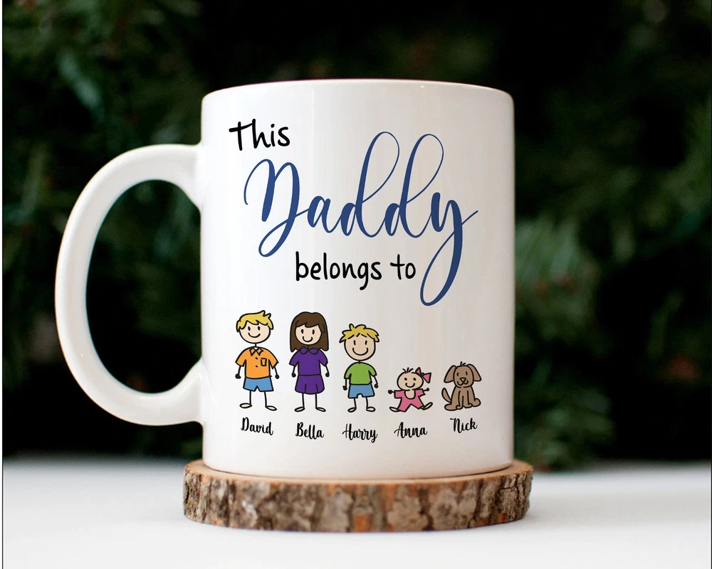 Personalized This Daddy Belongs To Children Mug Custom Children Coffee Mug Dad Product Details.. This high quality 11oz. ceramic white mug has a premium hard coat that provides crisp and vibrant color reproduction sure to last for years. Perfect for all hot & cold beverages. The highest quality printing possible is used. It will never fade no matter how many times you wash it. Material: 100% Ceramic. Print both sides. Dishwasher and Microwave Safe. High Gloss + Premium White Finish. Printed in the U.S.A. Personalized & Custom. We support personalized and custom mug to add custom, when placing an order, you can add notes to the "order note" in shipping address section. Also you can contact us directly via message. Shipping Info. Ready to ship in 1 to 2 business days, All products are made-to-order and proudly printed in the United States. Shipped by USPS and DHL, You will receive your order in 5-7 days. Replace & Refund. All products are defective during shipping broken, chipped will be replaced free of charge. You are not satisfied with the product, we will refund 100% money to you. If any other issues arise, please do not hesitate to message, we would be more than happy to assist you.