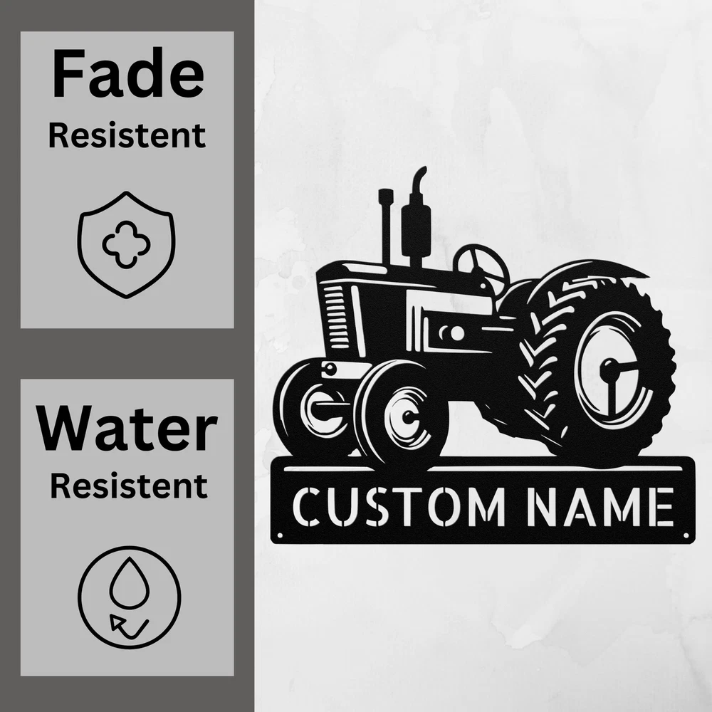 Product Description Personalized Tractor Metal Sign Custom Farm Decor Unique Gift for Farmers Bring a touch of the countryside into your home with our Personalized Tractor Metal Sign ! This charming sign is perfect for tractor enthusiasts, farmers, or anyone who loves a rustic vibe. Made from 16 gauge high-quality metal , this sign is built to last. The powder coating ensures it’s resistant to dust, weather, and water, making it suitable for both indoor and outdoor display. Key features include: Customizable Options: Personalize it with your name or a special message for a unique touch. Durable Material: Crafted from sturdy metal to withstand the elements and retain its beauty. Perfect Gift Idea: An ideal present for Christmas, birthdays, or any special occasion. Versatile Decor: Great for decorating your home, office, garage, or garden. Make your space feel welcoming with the Personalized Tractor Metal Sign . Order yours today and celebrate your love for all things farm! Service and Color Choice Our metal signs are designed to be personalized just for you, making them the perfect addition to any space! The default color for our signs is Black , but we also offer a variety of beautiful options including Copper, Gold, White, and Silver . After placing your order, simply contact us with your preferred color choice, and we'll ensure your sign is exactly how you envision it. Let’s create something special together!