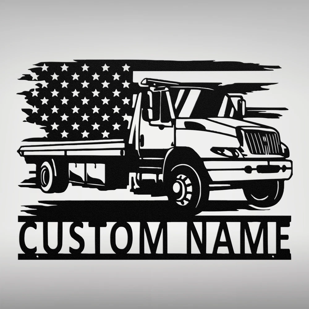 Personalized US Tow Truck Metal Sign Custom Towing Decor Gift for Truck Lovers