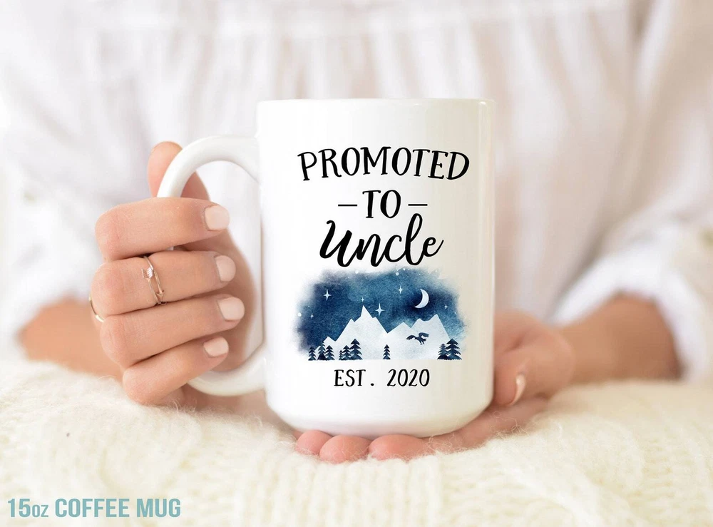 Personalized Uncle Mug Promoted To Uncle Pregnancy Reveal New Uncle Gift New Product Details.. This high quality 11oz. ceramic white mug has a premium hard coat that provides crisp and vibrant color reproduction sure to last for years. Perfect for all hot & cold beverages. The highest quality printing possible is used. It will never fade no matter how many times you wash it. Material: 100% Ceramic. Print both sides. Dishwasher and Microwave Safe. High Gloss + Premium White Finish. Printed in the U.S.A. Personalized & Custom. We support personalized and custom mug to add custom, when placing an order, you can add notes to the "order note" in shipping address section. Also you can contact us directly via message. Shipping Info. Ready to ship in 1 to 2 business days, All products are made-to-order and proudly printed in the United States. Shipped by USPS and DHL, You will receive your order in 5-7 days. Replace & Refund. All products are defective during shipping broken, chipped will be replaced free of charge. You are not satisfied with the product, we will refund 100% money to you. If any other issues arise, please do not hesitate to message, we would be more than happy to assist you.