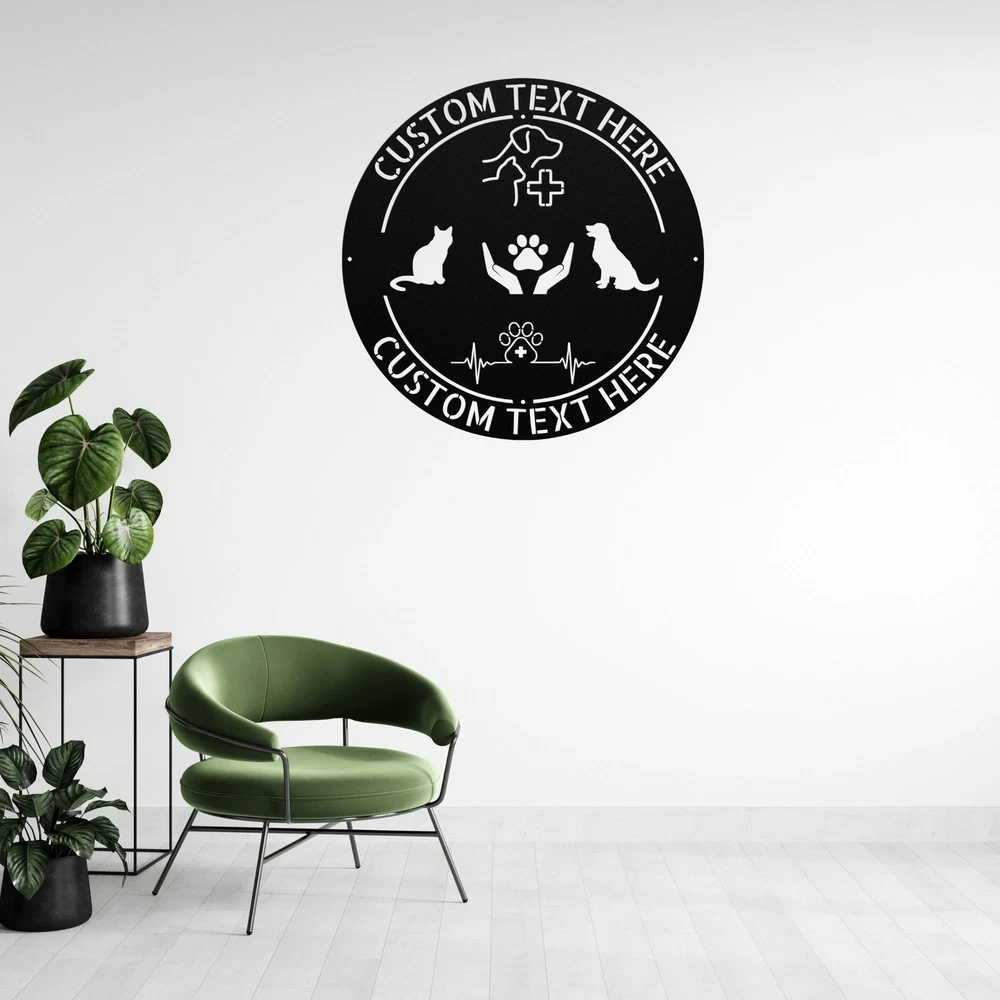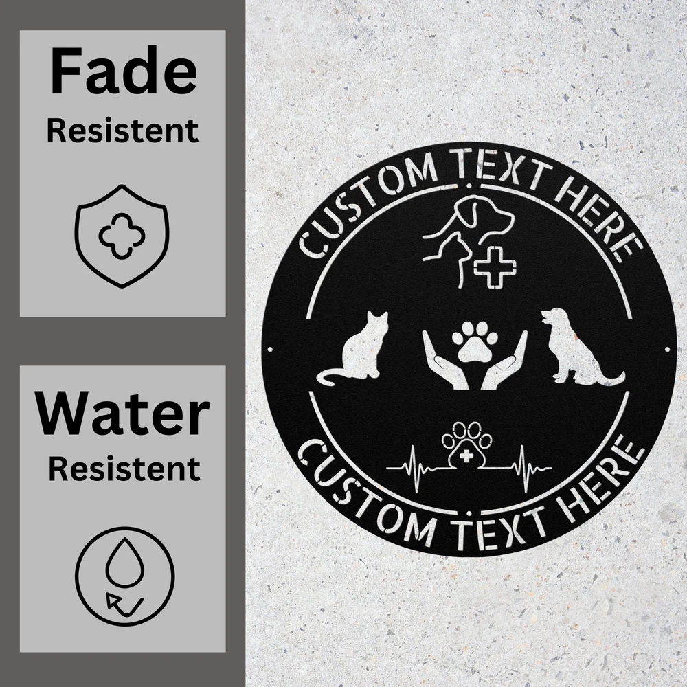 Product Description Personalized Veterinary Name Metal Sign Custom Veterinarian Wall Decor Art Celebrate the dedication and compassion of veterinarians with this Personalized Veterinary Name Metal Sign . Perfect for vet clinics, offices, or homes, this custom wall decor piece is a thoughtful way to honor the hard work and love that veterinarians bring to their profession. Whether as a gift or a personal keepsake, this sign adds a touch of professionalism and warmth to any space. Key Features: Customizable Design: Personalize the sign with a name, clinic name, or a heartfelt message to create a unique and meaningful piece. Premium Metal Craftsmanship: Made from high-quality, durable metal for a polished and long-lasting finish. Versatile Decor: Ideal for veterinary clinics, offices, or homes – a perfect addition to any space that celebrates animal care. Easy to Hang: Comes with pre-drilled holes for quick and easy mounting. Thoughtful Gift Idea: A unique and heartfelt gift for veterinarians, vet techs, or animal lovers. Great for retirements, graduations, or special achievements. Veterinary-Themed Design: Features elegant animal paw prints, stethoscopes, or other veterinary-inspired details to celebrate the profession. Weather-Resistant Finish: Designed for indoor use with a protective coating to prevent rust and fading. This Personalized Veterinary Name Metal Sign is more than just decor – it’s a heartfelt way to honor the passion and dedication of veterinarians. Whether as a gift or a personal keepsake, this engraved sign is a timeless piece that inspires and celebrates the love of animal care. Order now to create a beautiful and meaningful tribute to the veterinary profession! 🐾 Service and Color Choice Our metal signs are designed to be personalized just for you, making them the perfect addition to any space! The default color for our signs is Black , but we also offer a variety of beautiful options including Copper, Gold, White, and Silver . After placing your order, simply contact us with your preferred color choice, and we'll ensure your sign is exactly how you envision it. Let’s create something special together!