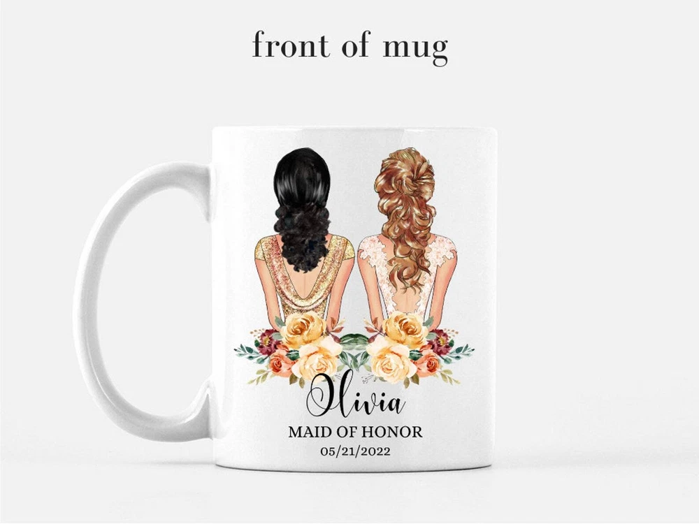 Personalized Wedding Mug Custom Saying Party Mug Custom Sister Wedding Mug Product Details.. This high quality 11oz. ceramic white mug has a premium hard coat that provides crisp and vibrant color reproduction sure to last for years. Perfect for all hot & cold beverages. The highest quality printing possible is used. It will never fade no matter how many times you wash it. Material: 100% Ceramic. Print both sides. Dishwasher and Microwave Safe. High Gloss + Premium White Finish. Printed in the U.S.A. Personalized & Custom. We support personalized and custom mug to add custom, when placing an order, you can add notes to the "order note" in shipping address section. Also you can contact us directly via message. Shipping Info. Ready to ship in 1 to 2 business days, All products are made-to-order and proudly printed in the United States. Shipped by USPS and DHL, You will receive your order in 5-7 days. Replace & Refund. All products are defective during shipping broken, chipped will be replaced free of charge. You are not satisfied with the product, we will refund 100% money to you. If any other issues arise, please do not hesitate to message, we would be more than happy to assist you.