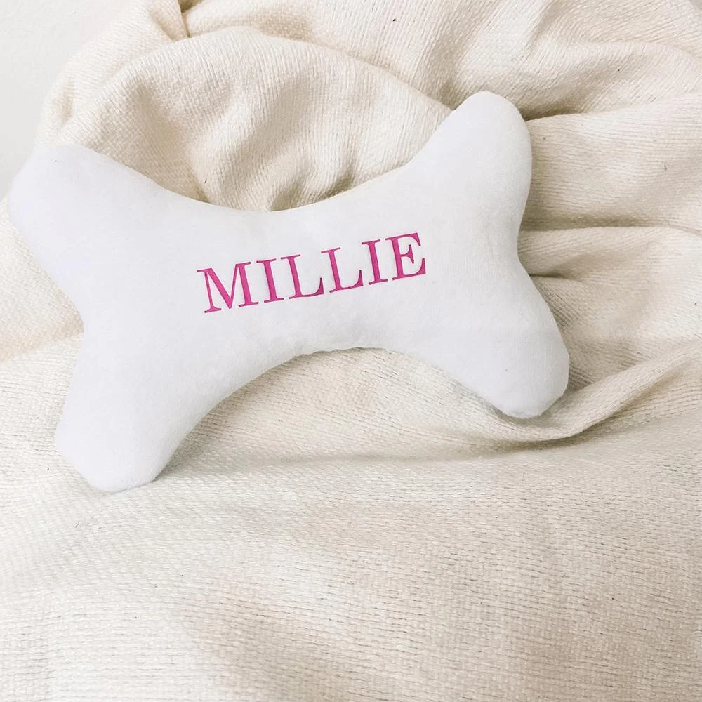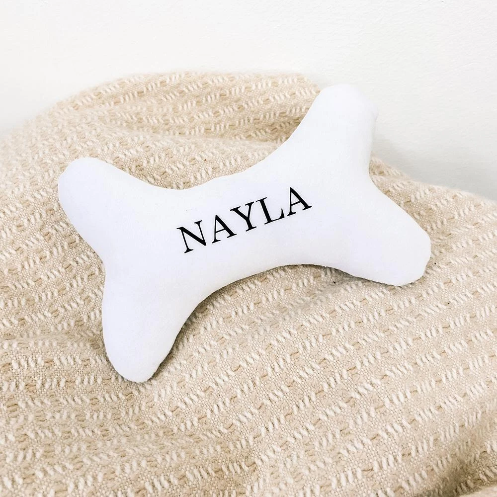 FREE SHIPPING 30 DAYS RETURN EASY PAYMENT Personalized White Bone Shape Dog Toy Durable Chew Squeaky Plush Puppy Gift Cust Please tell us the name you want or it will be sent without any name thank you. Interactive: The pet chew toy can promote the interaction between you and your Dog, and make it happy Pleasure and diversion: The dog bite toy can draw your pets attention, reducing its boredom and depression Function: The puppy playing toy can help dogs clean teeth, correct bad biting behavior and protect your furniture from biting by your pets Material: The pet chew toy is made of pp cotton, soft and fluffy Pet chew toy color: White Puppy playing toy material: PP cotton Dog bite toy size: Length: 15cm Package includes: 1 x Pet chew toy Note: - Only 1 pet chew toy is included. - Please refer to the measurement. Tiny measuring error is allowable in normal range. - There might be a little color difference due to the monitor, camera or other factors, please refer to the physical item. Packing list 1 x Pet chew toy REVIEWS The product came very well packaged. I'm very happy. thank you for everything. Seller strongly recommended. This is great! I definitely recommend! Product looks amazing Delivery was fast. Excellent seller, great communication. I advise everyone
