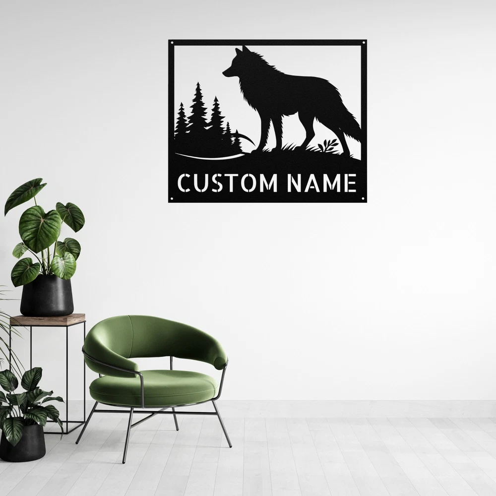 Product Description Personalized Wild Wolf Metal Sign Custom Home Decor Gift for Animal Lovers Bring the wild spirit of nature into your home with our Personalized Wild Wolf Metal Sign . This striking sign is perfect for wolf lovers and those who appreciate the beauty of wildlife. Crafted from 16 gauge high-quality metal , this sign is built to last. Its powder coating ensures it is dust, weather, and water resistant, making it suitable for both indoor and outdoor display. Key features include: Customizable Design: Personalize your sign with names, dates, or special messages to make it truly yours. Durable and Weather Resistant: Ideal for use in any environment, whether hanging in your home, garden, or office. Perfect Gift Idea: A thoughtful present for Christmas, birthdays, or any occasion for the animal lover in your life. Eye-Catching Decoration: This sign adds a unique touch to any room or outdoor space, showcasing your love for wildlife. Elevate your decor with the Personalized Wild Wolf Metal Sign . Order yours today to create a one-of-a-kind piece that reflects your passion for the wild! Service and Color Choice Our metal signs are designed to be personalized just for you, making them the perfect addition to any space! The default color for our signs is Black , but we also offer a variety of beautiful options including Copper, Gold, White, and Silver . After placing your order, simply contact us with your preferred color choice, and we'll ensure your sign is exactly how you envision it. Let’s create something special together!
