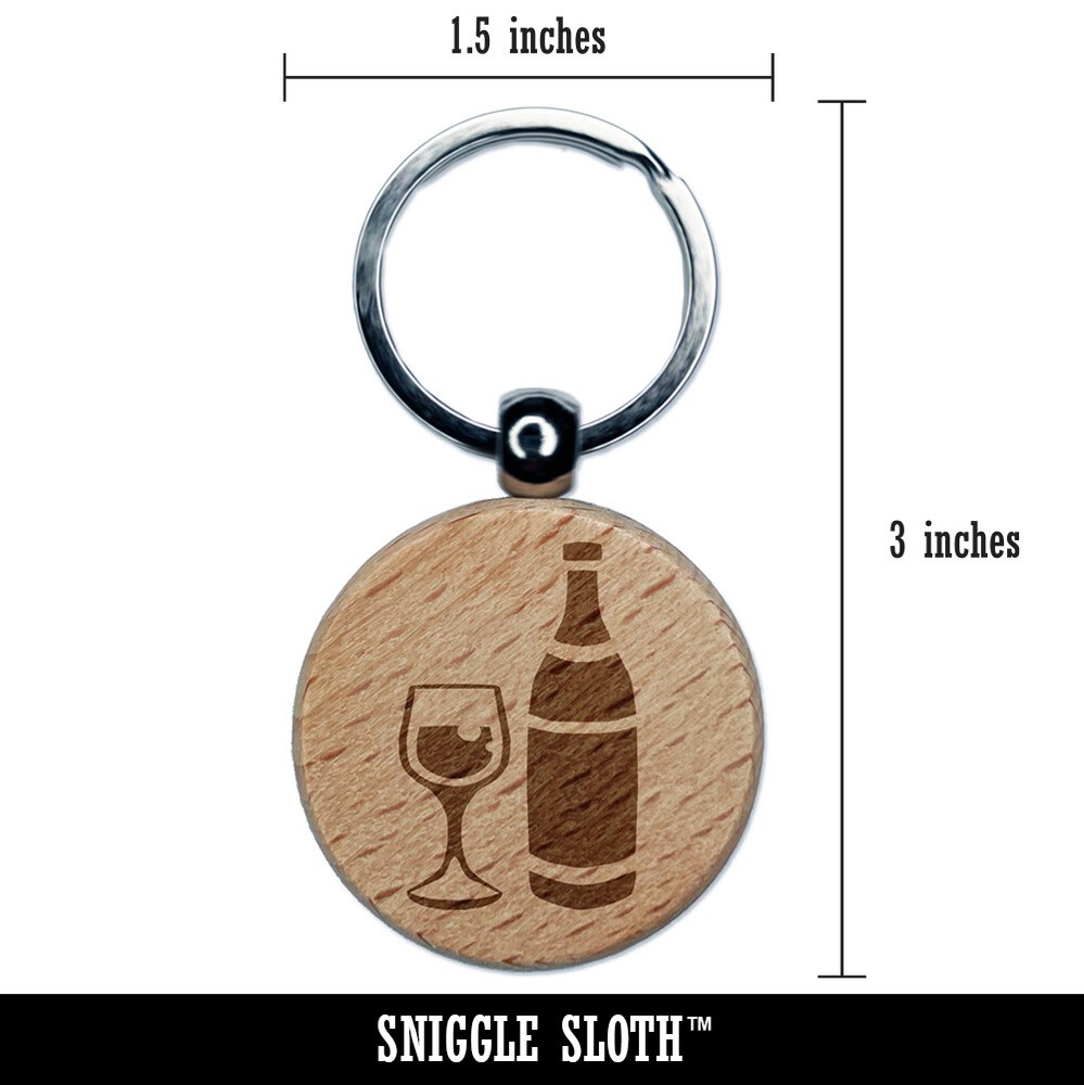 Personalized Wine Bottle & Glass Wooden Keychain Charm