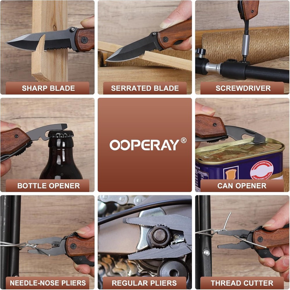 Fathers Day Gifts for Dad: Give this WORLD’S BEST DAD wood knife to dad as a fathers day gift, bring a splash of color to dad’s outdoor life, put it in fathers day gifts for unforgettable fathers day memories World’s Best Dad: This dad fathers day gift knife is made of great hardness 440C stainless steel, the best dad knife is finely polished and made of wooden handle. Good wood, good texture, good engraving. Accompany dad every fathers day Practical Functions: The dad knife blade is suitable for cutting ropes to help dad set up tent while camping or open fathers day gifts for dad, dad gifts for fathers day, the convenient pliers and screwdrivers can repair kinds of furniture, and the bottle opener make dads life more easy Multiple Use Scenario: Dad need to deal with many difficulties and challenges when dad are outdoors, our EDC dad knife can work well in various scenarios such as camping, hiking. It is an essential item in dad's toolbox for Christmas, Birthday, Fathers Day Folding And Storage: This fathers day compact knife is portable, its length is 7.6inch and weight is 7.5oz. the included nylon pouch helps dad to organize it efficiently and easy to carry it around.The colorful packaging makes this fathers day gift for dad more beautiful Safety And Stability: Multiple safety locks are included to give dad more stability when dad use it, just press the safety lock and the fathers day knife will close tightly, great dad gifts for fathers day, Christmas gifts for outdoor enthusiasts Dad Gifts for Fathers Day Birthday: This wood handle Knife is beautiful and practical, which is very suitable for the happy atmosphere of fathers day, give it as a special fathers day gift to dad, add a special meaning and memories for dad Product Description Happy Fathers Day To Dad With 20-In-1 Multitool The video showcases the product in use. The video guides you through product setup. The video compares multiple products. The video shows the product being unpacked. gifts for dad Merchant Video This pocket knife is a craft fathers day gift rich in aesthetic value, and its variety of tools that are compact and reasonable, encompassing more functions in a smaller size, it is an essential item in a dad's EDC toolbox. Fathers Day Gifts For World’s Best Dad The knife dad gift is inspired by the elegant wood handle, we mix it with a versatile variety of daily tools, it will be the best EDC tool fathers day gifts for dad to ward off all kinds of small troubles. Wood Multitool Gifts For Dad Practical Pliers The pliers have a wide range of uses and can also help dad complete the fathers day party decoration. Finger Studs The inclusion of finger studs allows dad to operate with one hand more easily and quickly. Safety Lock Safety device makes you more stable when making handmade dad gifts. Screwdriver Kit Nine kinds of replaceable screwdriver bits, you can assemble your favorite fathers day gifts any way you want. Sharp Knife Suitable for Fathers Day gifts for dad Saw Knife Suitable for Fathers Daydad gifts Can Opener Suitable for dad gifts from daughter Bottle Opener Suitable for dad gifts from son