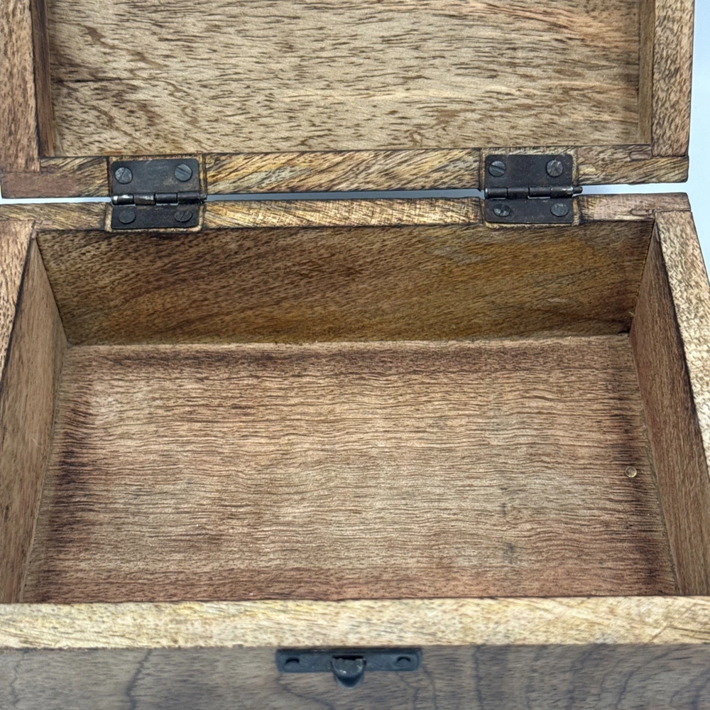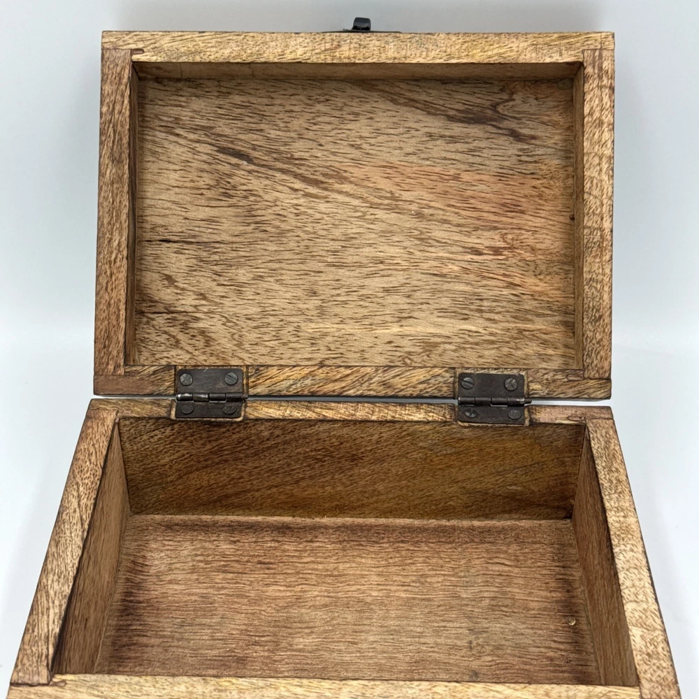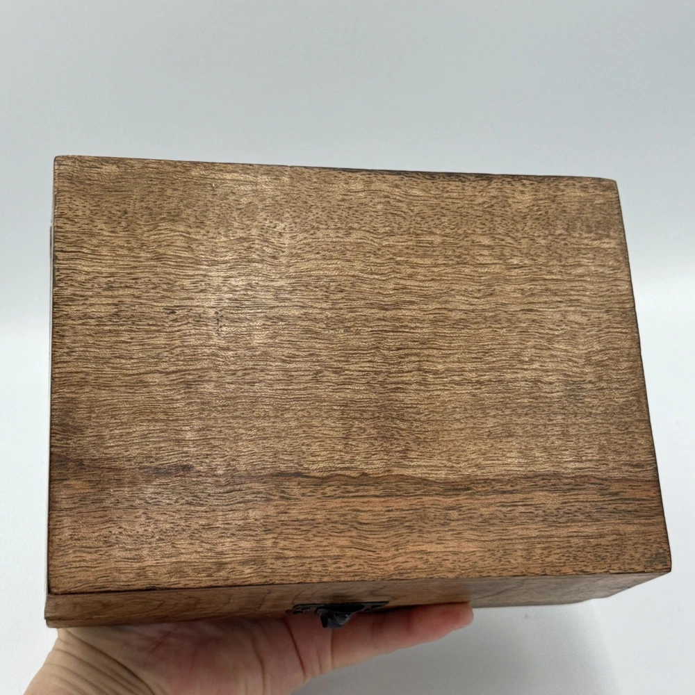 Department:Kids, Teens, AdultsType:Jewelry BoxSubject:BoxingBrand:WoodenTime Period Manufactured:1990-1999Color:BrownStyle:AbstractTheme:EclecticMaterial:WoodFinish:JewelledShape:CubeOccasion:All OccasionsFeatures:BoxedPattern:All-OverCollection:Keepsake BoxesCountry/Region of Manufacture:UnknownSize:Medium