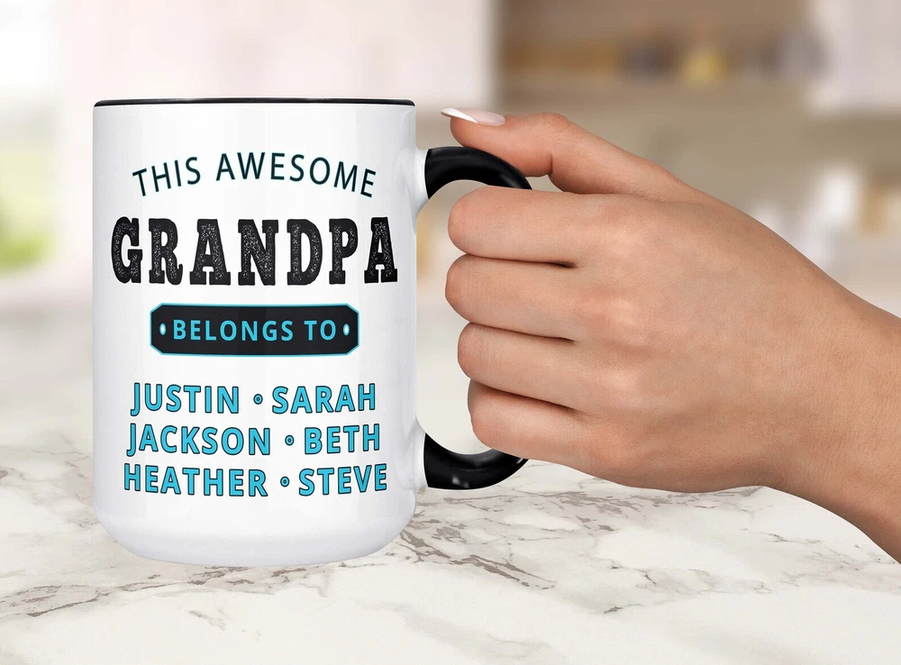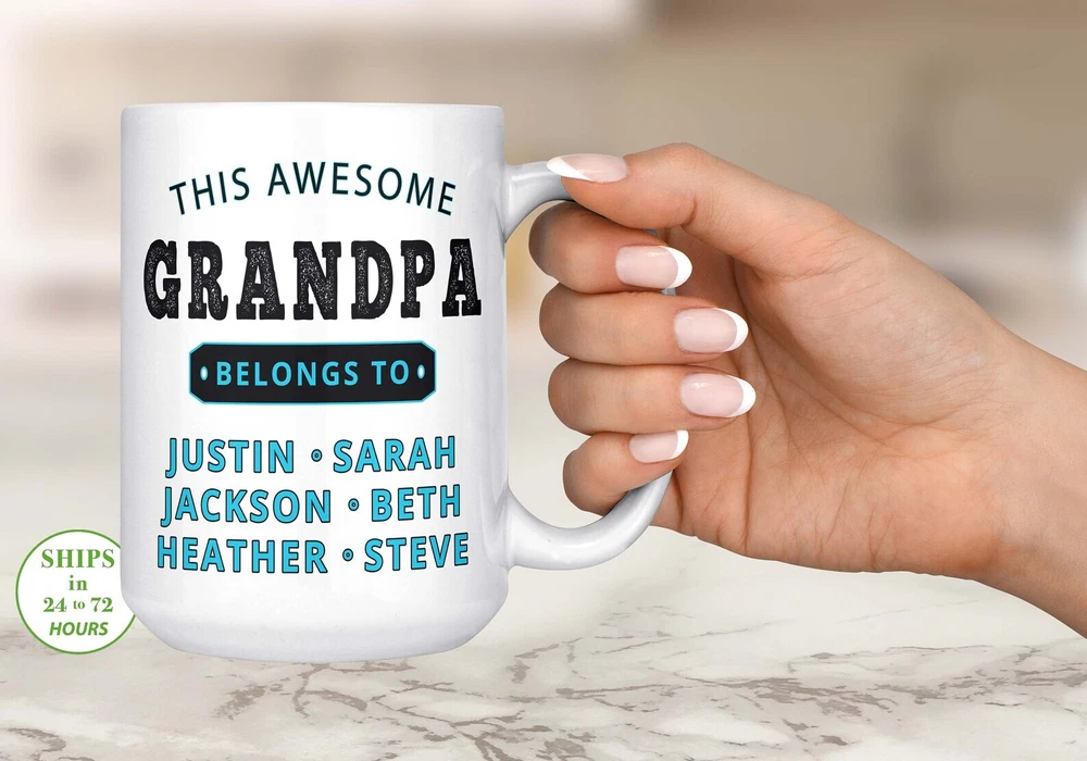Personalzied Grandpa Mug Grandpa Gift Custom Mug Gift For Grandpa Product Details.. This high quality 11oz. ceramic white mug has a premium hard coat that provides crisp and vibrant color reproduction sure to last for years. Perfect for all hot & cold beverages. The highest quality printing possible is used. It will never fade no matter how many times you wash it. Material: 100% Ceramic. Print both sides. Dishwasher and Microwave Safe. High Gloss + Premium White Finish. Printed in the U.S.A. Personalized & Custom. We support personalized and custom mug to add custom, when placing an order, you can add notes to the "order note" in shipping address section. Also you can contact us directly via message. Shipping Info. Ready to ship in 1 to 2 business days, All products are made-to-order and proudly printed in the United States. Shipped by USPS and DHL, You will receive your order in 5-7 days. Replace & Refund. All products are defective during shipping broken, chipped will be replaced free of charge. You are not satisfied with the product, we will refund 100% money to you. If any other issues arise, please do not hesitate to message, we would be more than happy to assist you.