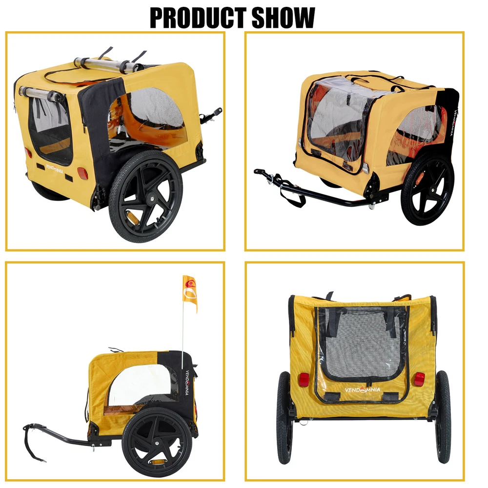 WATER RESISTANT MATERIAL: Element and weather-resistant fabric with a 2-in-1 canopy and mesh shielding so your dog can enjoy the ride without pesky critters getting in the way. FOLDABLE FRAME: The unique folding frame makes the Pet Trailer easy to store and bring along on your next adventure! The low maintenance, 16 inch, 1-piece molded rubber wheels have air-filled tires that easily inflate with standard bike pump. SAFETY FIRST: Includes internal leash and no-slip floor to keep your pup safe and secure. Hook up the trailer, clip them in and enjoy your ride! REAR DOOR : Rear doggy door provides easy entry and exit and securely zips for added safety. BIKE COMPATIBILITY: Compatible with nearly all adult bicycles with included coupler. Fits 20”-29” wheels. Internal leash is adjustable to prevent pets from leaping out of the trailer, holds one Pet up to 88lbs. Plenty of air ventilation. Safety flag is included WATER RESISTANT MATERIAL: Element and weather-resistant fabric with a 2-in-1 canopy and mesh shielding so your dog can enjoy the ride without pesky critters getting in the way. FOLDABLE FRAME: The unique folding frame makes the Pet Trailer easy to store and bring along on your next adventure! The low maintenance, 16 inch, 1-piece molded rubber wheels have air-filled tires that easily inflate with standard bike pump. Internal leash is adjustable to prevent pets from leaping out of the trailer, holds one Pet up to 88lbs. Plenty of air ventilation. WATER RESISTANT MATERIAL: Element and weather-resistant fabric with a 2-in-1 canopy and mesh shielding so your dog can enjoy the ride without pesky critters getting in the way. FOLDABLE FRAME: The unique folding frame makes the Pet Trailer easy to store and bring along on your next adventure! The low maintenance, 16 inch, 1-piece molded rubber wheels have air-filled tires that easily inflate with standard bike pump. SAFETY FIRST: Includes internal leash and no-slip floor to keep your pup safe and secure. Hook up the trailer, clip them in and enjoy your ride! REAR DOOR : Rear doggy door provides easy entry and exit and securely zips for added safety. BIKE COMPATIBILITY: Compatible with nearly all adult bicycles with included coupler. Fits 20”-29” wheels. Internal leash is adjustable to prevent pets from leaping out of the trailer, holds one Pet up to 88lbs. Plenty of air ventilation. Safety flag is included WATER RESISTANT MATERIAL: Element and weather-resistant fabric with a 2-in-1 canopy and mesh shielding so your dog can enjoy the ride without pesky critters getting in the way. FOLDABLE FRAME: The unique folding frame makes the Pet Trailer easy to store and bring along on your next adventure! The low maintenance, 16 inch, 1-piece molded rubber wheels have air-filled tires that easily inflate with standard bike pump. Internal leash is adjustable to prevent pets from leaping out of the trailer, holds one Pet up to 88lbs. Plenty of air ventilation. WATER RESISTANT MATERIAL: Element and weather-resistant fabric with a 2-in-1 canopy and mesh shielding so your dog can enjoy the ride without pesky critters getting in the way. FOLDABLE FRAME: The unique folding frame makes the Pet Trailer easy to store and bring along on your next adventure! The low maintenance, 16 inch, 1-piece molded rubber wheels have air-filled tires that easily inflate with standard bike pump. SAFETY FIRST: Includes internal leash and no-slip floor to keep your pup safe and secure. Hook up the trailer, clip them in and enjoy your ride! REAR DOOR : Rear doggy door provides easy entry and exit and securely zips for added safety. BIKE COMPATIBILITY: Compatible with nearly all adult bicycles with included coupler. Fits 20”-29” wheels. Internal leash is adjustable to prevent pets from leaping out of the trailer, holds one Pet up to 88lbs. Plenty of air ventilation. Safety flag is included WATER RESISTANT MATERIAL: Element and weather-resistant fabric with a 2-in-1 canopy and mesh shielding so your dog can enjoy the ride without pesky critters getting in the way. FOLDABLE FRAME: The unique folding frame makes the Pet Trailer easy to store and bring along on your next adventure! The low maintenance, 16 inch, 1-piece molded rubber wheels have air-filled tires that easily inflate with standard bike pump. Internal leash is adjustable to prevent pets from leaping out of the trailer, holds one Pet up to 88lbs. Plenty of air ventilation. WATER RESISTANT MATERIAL: Element and weather-resistant fabric with a 2-in-1 canopy and mesh shielding so your dog can enjoy the ride without pesky critters getting in the way. FOLDABLE FRAME: The unique folding frame makes the Pet Trailer easy to store and bring along on your next adventure! The low maintenance, 16 inch, 1-piece molded rubber wheels have air-filled tires that easily inflate with standard bike pump. SAFETY FIRST: Includes internal leash and no-slip floor to keep your pup safe and secure. Hook up the trailer, clip them in and enjoy your ride! REAR DOOR : Rear doggy door provides easy entry and exit and securely zips for added safety. BIKE COMPATIBILITY: Compatible with nearly all adult bicycles with included coupler. Fits 20”-29” wheels. Internal leash is adjustable to prevent pets from leaping out of the trailer, holds one Pet up to 88lbs. Plenty of air ventilation. Safety flag is included WATER RESISTANT MATERIAL: Element and weather-resistant fabric with a 2-in-1 canopy and mesh shielding so your dog can enjoy the ride without pesky critters getting in the way. FOLDABLE FRAME: The unique folding frame makes the Pet Trailer easy to store and bring along on your next adventure! The low maintenance, 16 inch, 1-piece molded rubber wheels have air-filled tires that easily inflate with standard bike pump. Internal leash is adjustable to prevent pets from leaping out of the trailer, holds one Pet up to 88lbs. Plenty of air ventilation.