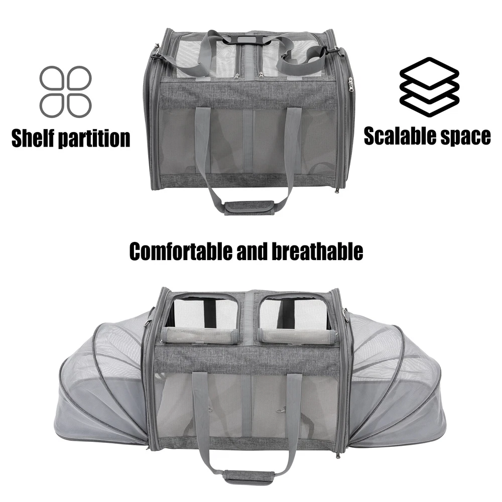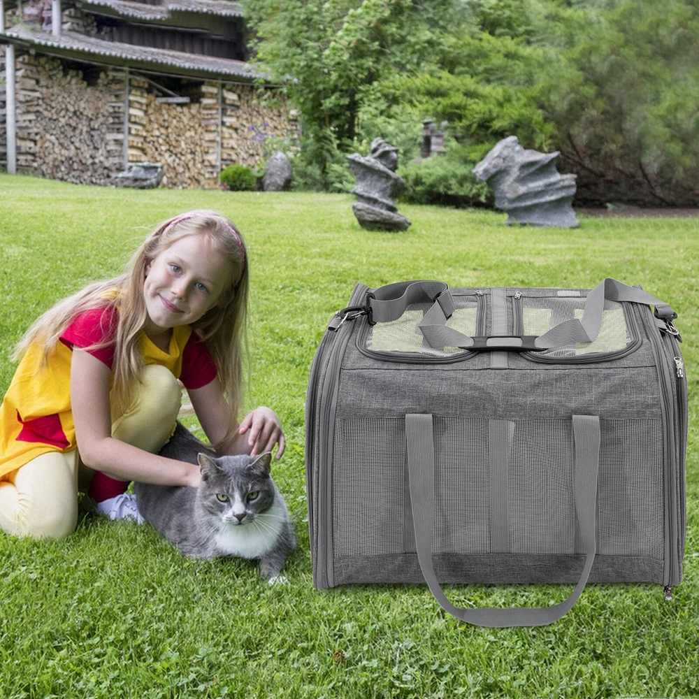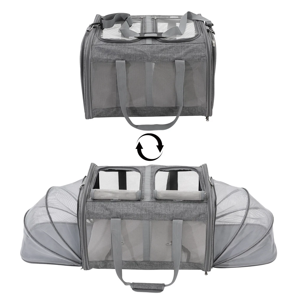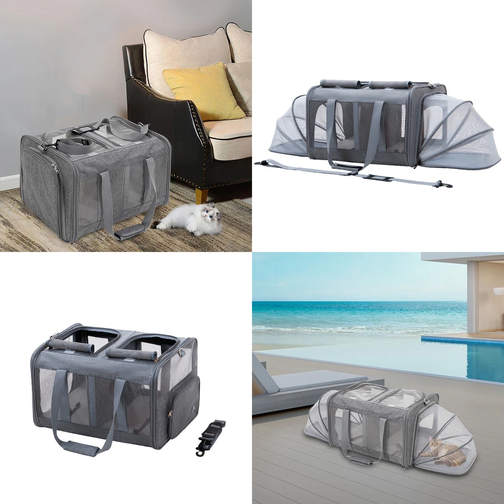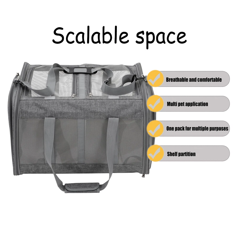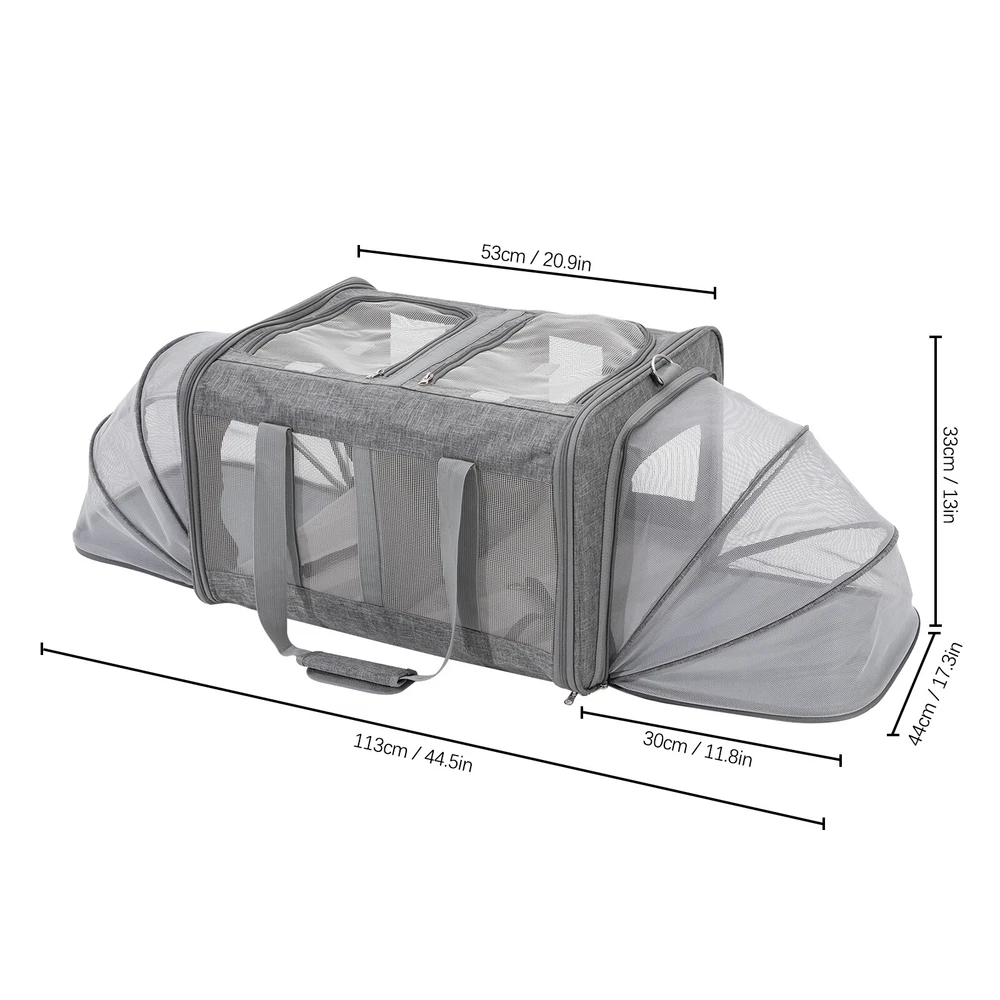 Pet Carrier Expandable Soft Sided Cat Dog Outgoing Travel Bag Airline Approved Description A comfortable cat carrier can provide cats with a sense of security and allow you to easily take your pets around. Our product is made of high-quality material, so it is strong and durable. It adopts an expandable design, providing ample space for your cat. With practical handles and a shoulder strap, you can always take your pet hiking, cycling, and camping to explore the wonders of the world together. Key Features Build to Last: It is mainly made of premium Oxford cloth and mesh and adopts an exquisite sewing process, making it soft, harmless , breathable, scratch-resistant, and tear-resistant, so it can withstand the test of time well. Foldable Design: It can be folded into a compact size, which does not take up too much space, making it easy to transport and store when not in use. Careful Design: Multiple breathable mesh on the front, top, and sides of the product provide a soft touch, and great breathability, making cats more comfortable, and allowing you to observe the cat’s condition at any time. The top can be opened to allow your cat/dog to stick its head out, satisfying pets' curiosity and also preventing stress reactions. Wide Space: The large size(expended size: 44.5*17.3*13in) and expandable design gives your pet more room to move around and reduce their anxiety, allowing them to freely stretch their bodies. In addition, two compartments can accommodate two pets at the same time. Strong Construction: Steel wire support, rubber plate, and composite plate at the bottom make this product more sturdy and less prone to collapse, so it is widely suitable for cats weighing less than 38 lbs. Easy to Carry: Two ergonomic handles and the removable and adjustable shoulder strap allow you to easily take your pets out for traveling, hiking, walking, and outdoor activities with three methods(portable, one shoulder, crossbody). You can have fun with your pets, enjoying more beautiful scenery without leaving them alone. Effortless Cleaning: The smooth surface and removable pad enable you to wipe dust and residues directly with water and a towel. Beautiful Appearance: The pleasing dark gray, smooth lines, and unique shape make the product modern and fashionable, making it eye-catching wherever it is used. Ideal Gift: With its beautiful appearance and large space, this product is an ideal holiday and housewarming gift for family, friends, and loved ones with cats. Guaranteed Customer Service: We aim to provide quality products and services. If you have problems, please feel free to contact us. We will reply and solve the problem for you as soon as possible. Details Self-locking Zipper & Seat Belt: The self-locking zipper makes this item only unzipped from outside and the built-in adjustable seat belt can prevent cats from opening the backpack and escaping. Zippered Netting Lids: Two top lids that can be curled and pasted are more convenient for cats to enter and exit. Removable Mats: 2 removable soft mats that can be used on both sides provide a comfortable place for your pet to rest. Application It is suitable for small and medium-sized pets weighing less than 38 lbs, such as cats, dogs, and rabbits, and can be widely used in homes, pet shops, pet hospitals, travels, and camping as a typical pet carrier, an indoor playpen, and temporary tent bed. Specification Color: Dark Gray Shape: Bag Material: Oxford Cloth, Mesh, Steel Wire, Rubber, Composite Plate Style: Modern Target Species: Cat, Dog, Rabbit Wash Style: Hand Wash Assembly Required: Yes Mount Type: Free Standing Number of Items: 1 Suitable Pet Weight: Within 17.5kg/38 lbs Expanded Product Size: 113*44*33cm/44.5*17.3*13in Unexpanded Product Size: 53*44*33cm/20.9*17,3*13in Each Expand Compartment Length: 30cm/11.8in Package Included 1* Cat Carrier 1* Shoulder Strap Notes Please do not wash it in the machine. Please hand wash it and let it dry naturally, and do not expose it directly to the sun. Please do not choose your carrier only based on weight, and your pets' length(neck to base of tail) and height(floor to top of shoulder) should be measured in selecting a carrier size. Please allow the slight color difference caused by the shooting light and 1-3 cm error due to manual measurement, and make sure you do not mind before ordering. Payment Delivery details Terms of sales About us Contact us Payment We accept ebay payment 。 Fees such as import duties, taxes are not included in the item price or shipping costs. These charges are the buyer's responsibility. Delivery details Shipping: 2-9 working days to: USA Terms of sales We maintain high standards of excellence and strive for hundred percent customer satisfaction. Feedback is very important to us. We hope that you contact us immediately before you give neutral or negative feedback, so that we can address your concerns. It is impossible to address issues if we do not know about them! About us Your satis faction is our ultimate goal. We work hard to earn your trust and future business. Our certified technicians have tested each item before shipping. The unit comes with 1 year limited warranty on all manufacturing defects. a) If you receive a defective item, you may return it or ask for a discount. Please contact us within 14 days after you receive the package. b) What you returned must be intact and in its original packaging as re? u. Customer is responsible for shipping costs of the returned item. c) We will cover the cost of shipping back t with the shipping rate indicated in the registration page. We will send you a new unit or refund the full payment you paid. Thank you. Contact us Business Hour Business Hour: Monday To Friday: 8:30 AM to 5:00 PM (Beijing China time) Due to time zones, our reply to your questions may not be immediately. But within above working time, we will reply your email within 24 hours. If it's non-workdays, please kindly be patient and wait till Monday. Please contact 