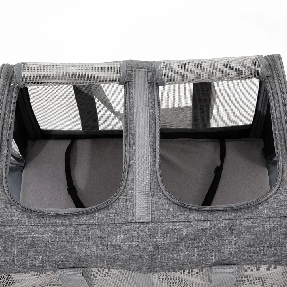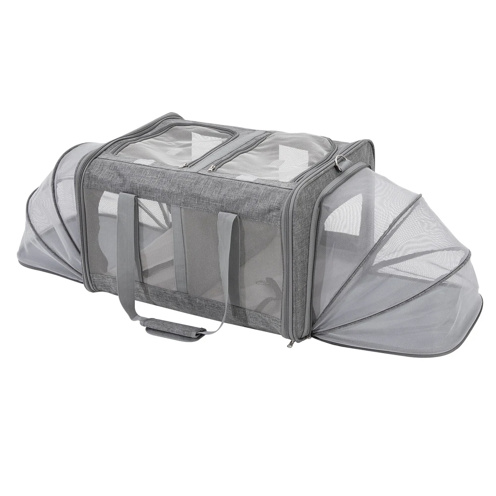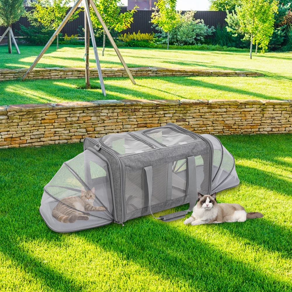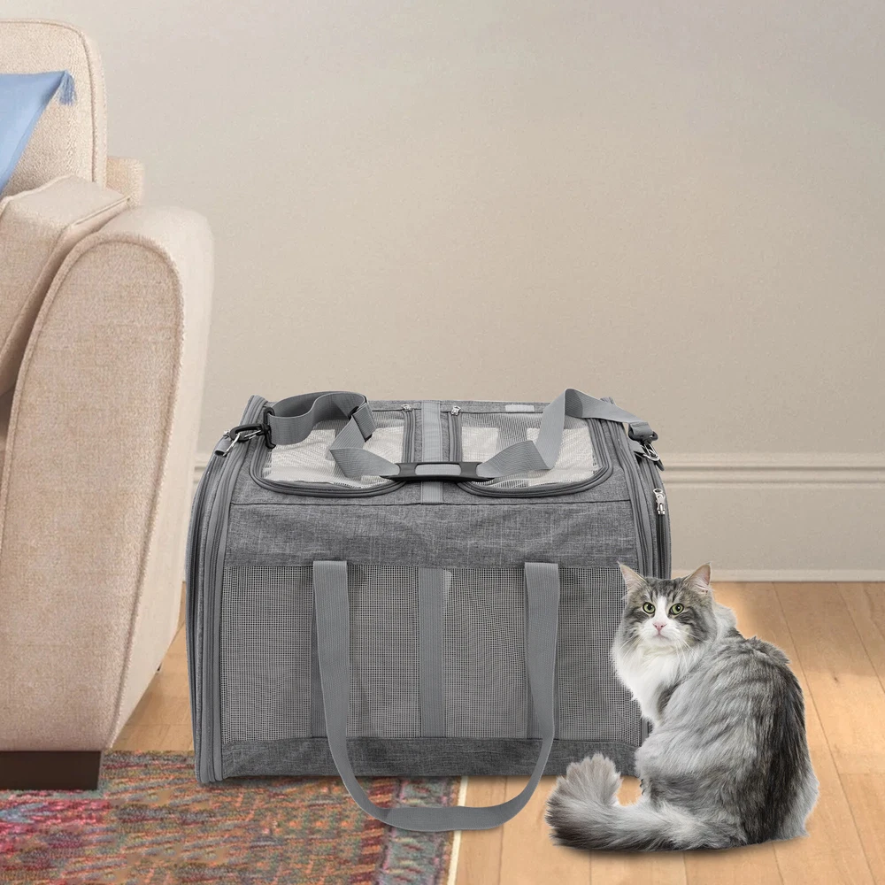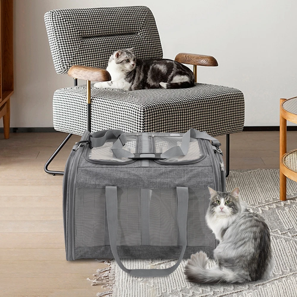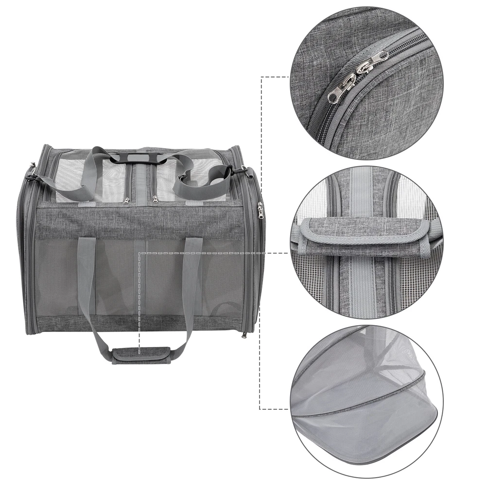 Pet Carrier Expandable Soft Sided Cat Dog Outgoing Travel Bag Airline Approved Description A comfortable cat carrier can provide cats with a sense of security and allow you to easily take your pets around. Our product is made of high-quality material, so it is strong and durable. It adopts an expandable design, providing ample space for your cat. With practical handles and a shoulder strap, you can always take your pet hiking, cycling, and camping to explore the wonders of the world together. Key Features Build to Last: It is mainly made of premium Oxford cloth and mesh and adopts an exquisite sewing process, making it soft, harmless , breathable, scratch-resistant, and tear-resistant, so it can withstand the test of time well. Foldable Design: It can be folded into a compact size, which does not take up too much space, making it easy to transport and store when not in use. Careful Design: Multiple breathable mesh on the front, top, and sides of the product provide a soft touch, and great breathability, making cats more comfortable, and allowing you to observe the cat’s condition at any time. The top can be opened to allow your cat/dog to stick its head out, satisfying pets' curiosity and also preventing stress reactions. Wide Space: The large size(expended size: 44.5*17.3*13in) and expandable design gives your pet more room to move around and reduce their anxiety, allowing them to freely stretch their bodies. In addition, two compartments can accommodate two pets at the same time. Strong Construction: Steel wire support, rubber plate, and composite plate at the bottom make this product more sturdy and less prone to collapse, so it is widely suitable for cats weighing less than 38 lbs. Easy to Carry: Two ergonomic handles and the removable and adjustable shoulder strap allow you to easily take your pets out for traveling, hiking, walking, and outdoor activities with three methods(portable, one shoulder, crossbody). You can have fun with your pets, enjoying more beautiful scenery without leaving them alone. Effortless Cleaning: The smooth surface and removable pad enable you to wipe dust and residues directly with water and a towel. Beautiful Appearance: The pleasing dark gray, smooth lines, and unique shape make the product modern and fashionable, making it eye-catching wherever it is used. Ideal Gift: With its beautiful appearance and large space, this product is an ideal holiday and housewarming gift for family, friends, and loved ones with cats. Guaranteed Customer Service: We aim to provide quality products and services. If you have problems, please feel free to contact us. We will reply and solve the problem for you as soon as possible. Details Self-locking Zipper & Seat Belt: The self-locking zipper makes this item only unzipped from outside and the built-in adjustable seat belt can prevent cats from opening the backpack and escaping. Zippered Netting Lids: Two top lids that can be curled and pasted are more convenient for cats to enter and exit. Removable Mats: 2 removable soft mats that can be used on both sides provide a comfortable place for your pet to rest. Application It is suitable for small and medium-sized pets weighing less than 38 lbs, such as cats, dogs, and rabbits, and can be widely used in homes, pet shops, pet hospitals, travels, and camping as a typical pet carrier, an indoor playpen, and temporary tent bed. Specification Color: Dark Gray Shape: Bag Material: Oxford Cloth, Mesh, Steel Wire, Rubber, Composite Plate Style: Modern Target Species: Cat, Dog, Rabbit Wash Style: Hand Wash Assembly Required: Yes Mount Type: Free Standing Number of Items: 1 Suitable Pet Weight: Within 17.5kg/38 lbs Expanded Product Size: 113*44*33cm/44.5*17.3*13in Unexpanded Product Size: 53*44*33cm/20.9*17,3*13in Each Expand Compartment Length: 30cm/11.8in Package Included 1* Cat Carrier 1* Shoulder Strap Notes Please do not wash it in the machine. Please hand wash it and let it dry naturally, and do not expose it directly to the sun. Please do not choose your carrier only based on weight, and your pets' length(neck to base of tail) and height(floor to top of shoulder) should be measured in selecting a carrier size. Please allow the slight color difference caused by the shooting light and 1-3 cm error due to manual measurement, and make sure you do not mind before ordering. Payment Delivery details Terms of sales About us Contact us Payment We accept ebay payment 。 Fees such as import duties, taxes are not included in the item price or shipping costs. These charges are the buyer's responsibility. Delivery details Shipping: 2-9 working days to: USA Terms of sales We maintain high standards of excellence and strive for hundred percent customer satisfaction. Feedback is very important to us. We hope that you contact us immediately before you give neutral or negative feedback, so that we can address your concerns. It is impossible to address issues if we do not know about them! About us Your satis faction is our ultimate goal. We work hard to earn your trust and future business. Our certified technicians have tested each item before shipping. The unit comes with 1 year limited warranty on all manufacturing defects. a) If you receive a defective item, you may return it or ask for a discount. Please contact us within 14 days after you receive the package. b) What you returned must be intact and in its original packaging as re? u. Customer is responsible for shipping costs of the returned item. c) We will cover the cost of shipping back t with the shipping rate indicated in the registration page. We will send you a new unit or refund the full payment you paid. Thank you. Contact us Business Hour Business Hour: Monday To Friday: 8:30 AM to 5:00 PM (Beijing China time) Due to time zones, our reply to your questions may not be immediately. But within above working time, we will reply your email within 24 hours. If it's non-workdays, please kindly be patient and wait till Monday. Please contact 