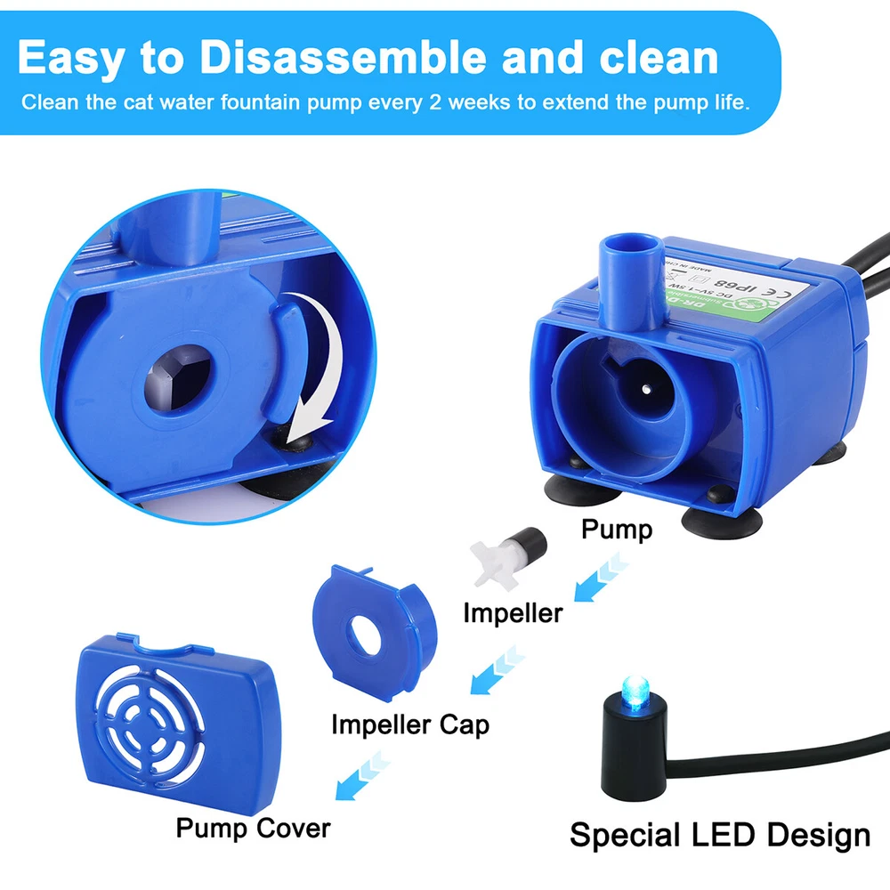 Pet Cat Dog Water Fountain Pump Filter Replacement Motor with LED Light