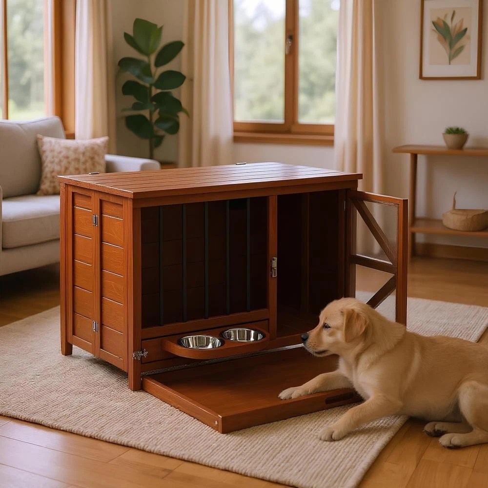 🌟 1 YEAR WARRANTY & 30-DAY FREE RETURN 🌟 We stand behind our products! Enjoy a 1-year manufacturer's warranty for worry-free purchase, and 30-day free return/exchange service if you're not completely satisfied. Your satisfaction is our top priority! Product Overview Upgrade your pet's living space while enhancing your home decor with our Solid Wood Dog Crate Furniture. Designed as a 2-in-1 solution, it functions as a cozy retreat for your small to medium-sized dog and a stylish end table that blends seamlessly with your living room, bedroom, or hallway furnishings. Crafted from high-quality solid wood, it’s sturdy, safe, and packed with user-friendly features to make pet care easier than ever. Available Sizes & Specifications 1. 33" Solid Wood Dog Crate (Walnut) Category Details Material 100% Solid Wood (Walnut), Pet-Safe Non-Toxic Finish Assembled Dimensions 33.00" L x 24.25" W x 20.00" H Assembled Weight 29.74 LBS Packaging Dimensions 35.11" L x 26.00" W x 8.73" H Packaging Weight 37.26 LBS Interior Space 29.5" (Spacious for Small Dogs) Table Weight Capacity 132 LBS 2. 43" Solid Wood Dog Crate (Walnut) Category Details Material 100% Solid Wood (Walnut), Pet-Safe Non-Toxic Finish Assembled Dimensions 43.00" L x 28.75" W x 30.00" H Assembled Weight 47.36 LBS Packaging Dimensions 45.21" L x 31.73" W x 8.50" H Packaging Weight 57.98 LBS Interior Space 39.8" (Roomy for Small to Medium Dogs) Table Weight Capacity 132 LBS Key Features (Both Sizes) Tool-Free Assembly & Foldable Design : Set up in minutes—only need to attach the top panel and rotating bowl, no tools required! Fold flat for easy portability between rooms or travel. Perfect for apartments, small spaces, or on-the-go pet parents. Multi-Functional 2-in-1 Design : Doubles as a comfortable pet crate and a practical end table. The top surface supports up to 132 LBS, ideal for placing lamps, decor, books, or coffee. Elevates your home decor while providing a safe space for your fur baby. Patented 360° Rotating Feeder : Smooth 360° swivel allows feeding from inside or outside the crate. Comes with a removable stainless steel bowl that’s dishwasher-safe—easy to clean and prevents spills. Strengthen your bond with your pet during mealtime! Effortless Cleaning : Features a removable base and slide-out tray. Simply pull out the tray to clean up messes, hair, or spills in seconds—saves time and keeps the crate fresh. Portable & Space-Saving : Equipped with a convenient handle for easy carrying. Folds compactly for storage when not in use, keeping your living area tidy and organized. Sturdy & Pet-Safe Construction : Made of kiln-dried solid wood and reinforced metal framing. Non-toxic, chew-resistant edges, secure locking mechanism, and ventilated iron mesh flooring (prevents collar snags and ensures proper airflow). Escape-proof design gives you peace of mind. Stylish & Versatile : Elegant walnut finish complements any home decor. Can be used as an organizer, decor piece, or storage solution in various living spaces. Keep your pet close while maintaining a neat, fashionable home. Why Choose Our Solid Wood Dog Crate? This isn’t just a dog crate—it’s a lifestyle upgrade for you and your pet. We’ve combined functionality, style, and safety to create a product that lets you and your fur baby stay together while keeping your home organized. With our 1-year warranty and 30-day free return policy, you can buy with confidence. 📦 Fast Shipping | 🐾 Pet-Safe Materials | 🏡 Home Decor Friendly Choose the perfect size for your pup and add to cart today!