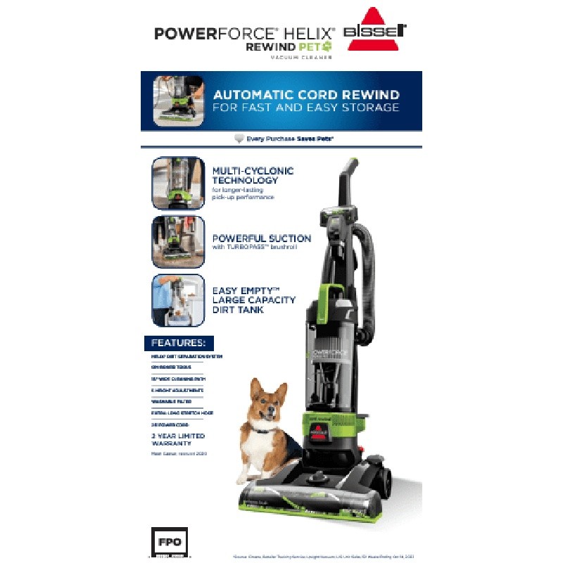 You may also like 150ft Garden Hose Hideaway Reel UV Resistant Smart Tube Durable Resin Storage US 79.65 USD Free shipping 50ft Drinking Water Hose RV Fresh Water Hose BPA Free Kink Resistant Durable New 60.14 USD Free shipping RV Sewer Hose Extension Flexible Durable Waste Hose Compatible Easy Storage New 41.33 USD Free shipping 17in Curved Shaft Gas Trimmer 26cc Bump Feed Adjustable Speed Yard Tool New 132.3 USD Free shipping PowerFit Edger Attachment 8in Blade String Trimmers Depth Adjustment Tool New 118.8 USD Free shipping Hosemobile Hose Reel Cart 175ft Capacity Durable Resin Easy Mobility Garden Use 53.83 USD Free shipping Hose Hideaway Garden Hose Storage Durable Resin Reel Organizer Low Maintenance 53.83 USD Free shipping 20ft RV Sewer Hose Kit Wye Connector 4in1 Adapter Heavy Duty Dual Dump New 87.73 USD Free shipping Heavy Gauge Steel Garden Hose Stand Storage 125ft Easy Assembly 3-Prong Anchor 50.81 USD Free shipping 175 ft Hose Reel Cart Durable Resin Garden Hose Storage Easy Mobility Wheels New 53.83 USD Free shipping Resin Hose Reel Hideaway 175ft Garden Hose Storage Lightweight Durable Solution 77.26 USD Free shipping 4.6A 13In Electric String Trimmer Dual Line Auto Feed Ergonomic Handle New 52.65 USD Free shipping PowerForce Helix Turbo Rewind Pet Upright Vacuum features our exclusive Helix™ Performance Dirt Separation System to help keep dirt out of the filters for longer-lasting pickup performance. It also features an extra-wide cleaning path to remove embedded dirt and hair in less time. PowerForce® Turbo Rewind Pet vacuum is lightweight and easy to maneuver, so you can carry it up and down the stairs and vacuum under furniture. Maintaining the machine is easy with the large-capacity Easy Empty™ Dirt Tank that empties dirt and debris with the push of a button. The automatic cord rewind also wraps the cord for you, so getting your machine ready for storage is a breeze. When you buy a product, you help save pets, too. We're proud to design products that help make pet messes, odors, and pet homelessness disappear. Every Purchase Saves Pets™. proudly supports Pet Foundation® and its mission to help save homeless pets. Automatic Cord Rewind. Rewind the cord with the push of a button for easy storage. Powerful Pet Hair Pickup in Every Pass. Multi-Cyclonic Technology delivers longer-lasting performance. Extra-wide Cleaning Path. Removes embedded dirt and hair for quicker cleanup. Pet Turbo Brush® Tool. Clean carpet, upholstery, stairs, and more with 10 ft of cleaning reach. Exclusive Helix™ Performance Dirt Separation System. Capture dirt and debris while extending filter life for longer-lasting performance. Lightweight and Maneuverable. Designed to clean under furniture. You may also like Queen Raised Air Mattress W/ Built-in Pump Headboard Portable Comfort Sleep New 105.89 USD 137.6 USD Free shipping 23% off Collapsible Rolling Cart W/ Adjustable Handle Magnetic Lid & 360° Wheels New 14.52 USD 15.28 USD Free shipping 5% off Stylish Two-Tier Nightstand Wooden Bedside Table W/ Rattan Drawer Storage New 49.99 USD 53.99 USD Free shipping 7% off Heavy-Duty Stackable Plastic Storage Bins W/ Lids Garage Tools Organization New 24.1 USD 25.37 USD Free shipping 5% off Cast Iron 44 Lbs Kettlebell Non Slip Handle Weight Training Strength Set New 37.47 USD 39.44 USD Free shipping 5% off Heavy Duty Weatherproof Mailbox W/ Key Lock Large Capacity Wall Mount Design New 39.2 USD 41.26 USD Free shipping 5% off Sturdy Flat Weight Bench Home Gym Strength Training Upper Body Workouts New 52.49 USD 56.68 USD Free shipping 7% off Dovetail Sight Pusher Tool Glock Sig Sauer H&K S&W Handgun Adjustments New 27.44 USD 28.88 USD Free shipping 5% off Locking Security Mailbox USPS Approved Anti-Theft Parcel Drop Steel Construction 134.08 USD 141.14 USD Free shipping 5% off Adjustable Gaming Chair W/ Flip-Up Armrests & Comfortable Lumbar Support New 130.95 USD 164.9 USD Free shipping 21% off Electric Coffee Percolator 12 CUP Coffee Pot Stainless Steel Auto Keep Warm New 63.46 USD 66.8 USD Free shipping 5% off Soft Jersey Bed Sheet Set King 4 Pieces Breathable Cozy Washable All-Season New 50.71 USD 59.98 USD Free shipping 15% off