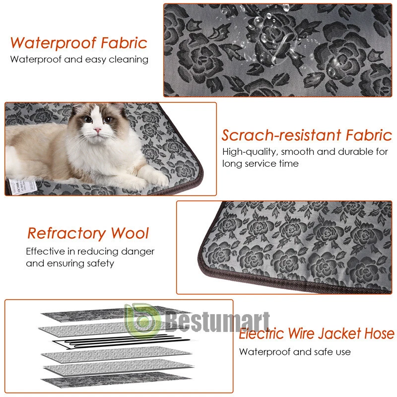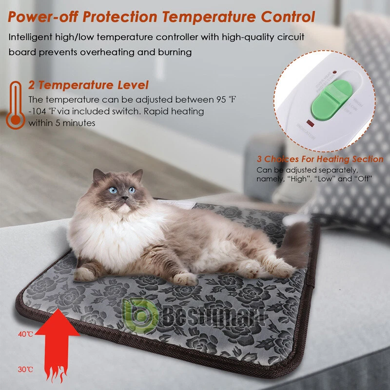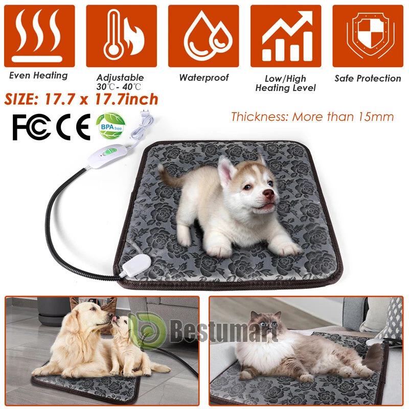 Pet Heating Pad Dog Cat Electric Heated Mat Waterproof Adjustable Temperature BUY WITH CONFIDENCE ↓ ↓ ↓ √ 100% New & Excellent Quality √ Strictly QC, Each set was fully tested before shipping √ Free 1-3 Days Shipping From NJ,USA.Ship within 24 hours. √ Offer delivery with Tracking Number √ Free Return, Seller Pay!! √ Lifetime Warranty Feature: -Adjustable temperature:High up to 104℉/low level -Overheating protection :Can avoid overheating to protect your pets. -Anti- bite cord&anti-electric shock : The cord is made of metal outer layer, avoid your pet biting or chewing it. - Easy to clean&waterproof - Durable material for long- lasting. -Widely use Bed warmer: Suitable for small animals like new born dogs, cats, rabbit, or animals recovering from illness or injury like arthritic pets, pregnant pets. Specification: Fabric: Waterproof Oxford cloth Power supply mode: AC Input voltage: 110v 60Hz Output voltage: 110v 0.2A /20w Rated power: 20W Modes: 2 Size:45*45*1.5cm/17.7*17.7*0.59inch Color:grey Package included: 1*Pet Pad with Steel Cord Payment Shipping Return Policy About Us Contact Us Payment *** We accept Paypal,Visa,Credit Card, e-Check . etc. Shipping Below is the approximate delivery time to different countries (Just estimated) *** 1-3 business days to buyer in USA via Expedited shipping *** 1-5 business days to buyer in USA via USPS Standard Shipping *** 5-12 business days to buyer in CANADA *** 8-15 business days to buyer in EUROPE Country (Depends on Custom) Return Policy *** Free Return, we accept 60 days Money Back or Exchange Guarantee for All Items. About Us Customer Comes First !! Contact Us For any questions or problems, please contact us in the first monent, we will always be here to help you solve the problem.(From Monday to Saturday, not for Holidays).