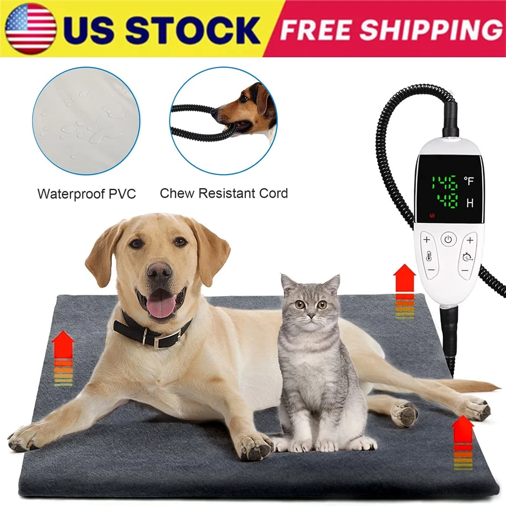 Features: Pet heating pad for dogs and cats Cozy and Warm Retardant and heat preservation With timer setting and multiple temperature adjustment With dual anti-bite wire Easy to wash Safety Instruction Specifications: Name: Pet Electric Blanket Size: about 45*70cm/17.7*27.6 inch Voltage: 110v Material: Surface plush, cotton, the inner said PVC waterproof Note: The internal is PVC material, it is recommended to ventilate before use! Packing list: 1x Pet heating pad (with controller) Pet Heating Pad Cats Electric Outdoor Dog Warming Bed Mat with Chew Resistant US Features: Pet heating pad for dogs and cats: This pet heat pad with strict electrical safety standards. Low and safe voltage, better use for your dog beds/cat beds, suitable for senior pets, arthritic pets, new born pets, pregnant pets or animals recovering from illness or injury,so,the warming blanket for pets in winter is very useful. Cozy and Warm: Pet heating mat help the pets (dog, cat, rabbit, etc.) to keep warm and comfortable when spend winter,help pets deeply sleep,this dog warm mats fit outdoor pet house or indoor beds used. Retardant and heat preservation: Soft surface Material And the inner lining is made of retardant and waterproof PVC film, it can better protect your furry friend from burns and provide warm comfort for your pet. Tip: Do not use a cat heating pad without a velvet cover! With timer setting and multiple temperature adjustment: We offer 86℉-141℉/30℃-60℃. Press the "+" or "-" button to raise or lower the temperature by 10℉ once. and with a timer function that provides 5 automatic shut-off ranges within 1-12 hours to save energy and prevent overheating burns. Press "+" or "-" to increase or decrease the time, each time you press 1-12 hours . The timer LED moves down one level to show how much time is left. With dual anti-bite wire: protect your pet from biting the wire and ensure safety. Easy to wash:The removable velvet cover can be machine washed or hand washed. NOTE:If the inner pad becomes dirty, you only need to wipe the inner pad with a damp cloth instead of soaking it in water. Safety Instruction: Please keep the dog and cat heating pad flat when in use, Please do not fold the heating pad when you use.place an object such as a pillow or fleece cover the heating pad. Specifications: Name: Pet Electric Blanket Size: about 45*70cm/17.7*27.6 inch Voltage: 110v Material: Surface plush, cotton, the inner said PVC waterproof Note: The internal is PVC material, it is recommended to ventilate before use! Packing list: 1x Pet heating pad (with controller) Payment Shipping Return Contact us About us Payment 1.Paypal, Credit Card, G Pay etc, many payment way is accepted. 2.Please be sure your shipping address is correct before make a payment. Shipping 1.We are shipping from multiple warehouses (Houston, Texas/ Corona, California) , please note before placing an order 2.We will ship out the item within 1-3 business days after comfirming the payment, appreciate your patience. 3.If the items are broken on the way( we will check the orders clearly before we sent them ),please contact us in 3 days you received it. We will send you a new one or refund your payment. Return 1.We stand behind every buyer.Items can be returned for exchange or refund within 30 days. 2.Please contact us when you have any confusion of our item, we will solve the trouble for you as soon as possible. Contact us 1.This is professional Seller.We will reply your message within 24 hours. 2.Please contact us whenever you have any question about the item. We will deal with it as soon as possible. 3. If you are unhappy with the item or our service,please Contact Us before leave feedback,just give me a chance,thank you! About us 1. Unless specified otherwise, all our products are IN STOCK and are shipped from Local warehouse - Not Overseas! 2. We provide a 30 day Satisfaction Guarantee or your money back (provided items are in the same new and resaleable condition.) 3. We have a PayPal Verified Business Account, please buy with Confidence! 4. Every item will be tesrted before send.We know our products well and if we don't have the answers we will do our best to find them for you! 5. Our friendly team look forward to serving you! Your satisfaction is our No.1 Priority We will do our best to satisfacy you.