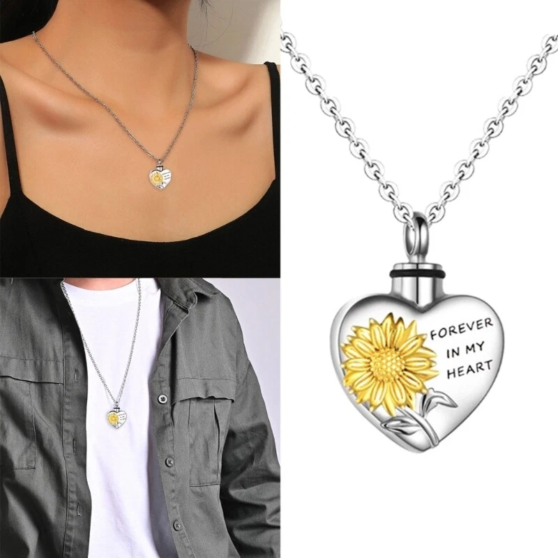 Pet Memorial Urn Jewelry UrnKeepsake Stainless Steel Cremation Urn Necklace Features: Keep your loved ones close to your heart with this small heart shaped pet cremation pendant. AlloyMetal, this pendant can be opened and used as anurn for storing the urn of your belovedpets or family members. for petowners and those who want to cherish the memory of their loved ones, this pendant is a meaningful and unique Whether youare indoor or outdoor, this pendant allows you to carry a part of your loved ones with you wherever you are. With its simple yet distinctive this pendant serves as a beautifultribute to your belovedpets or family members. Specifications: AlloyMetal Product Dimension: As pictures shown Package Includes: 1x Cremation Urn Necklace note: Please allow 1-2cm error due to manual measurement. please make sure you do not mind before you bid. Due to the difference between different monitors, the picture may not reflect the actual color of the item.