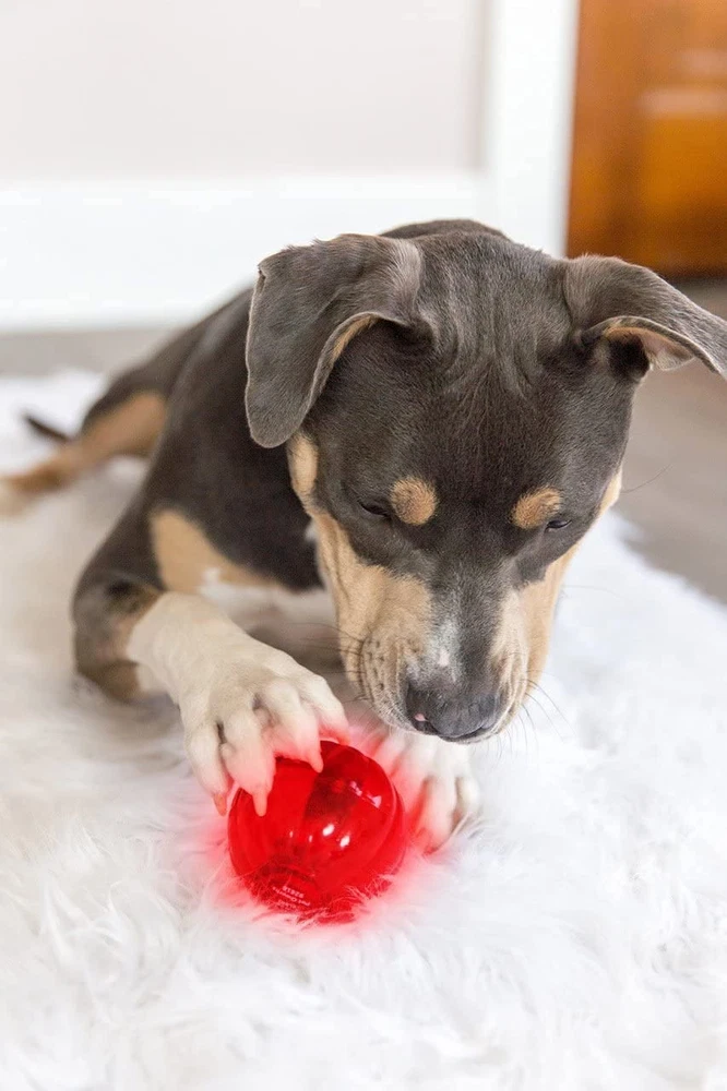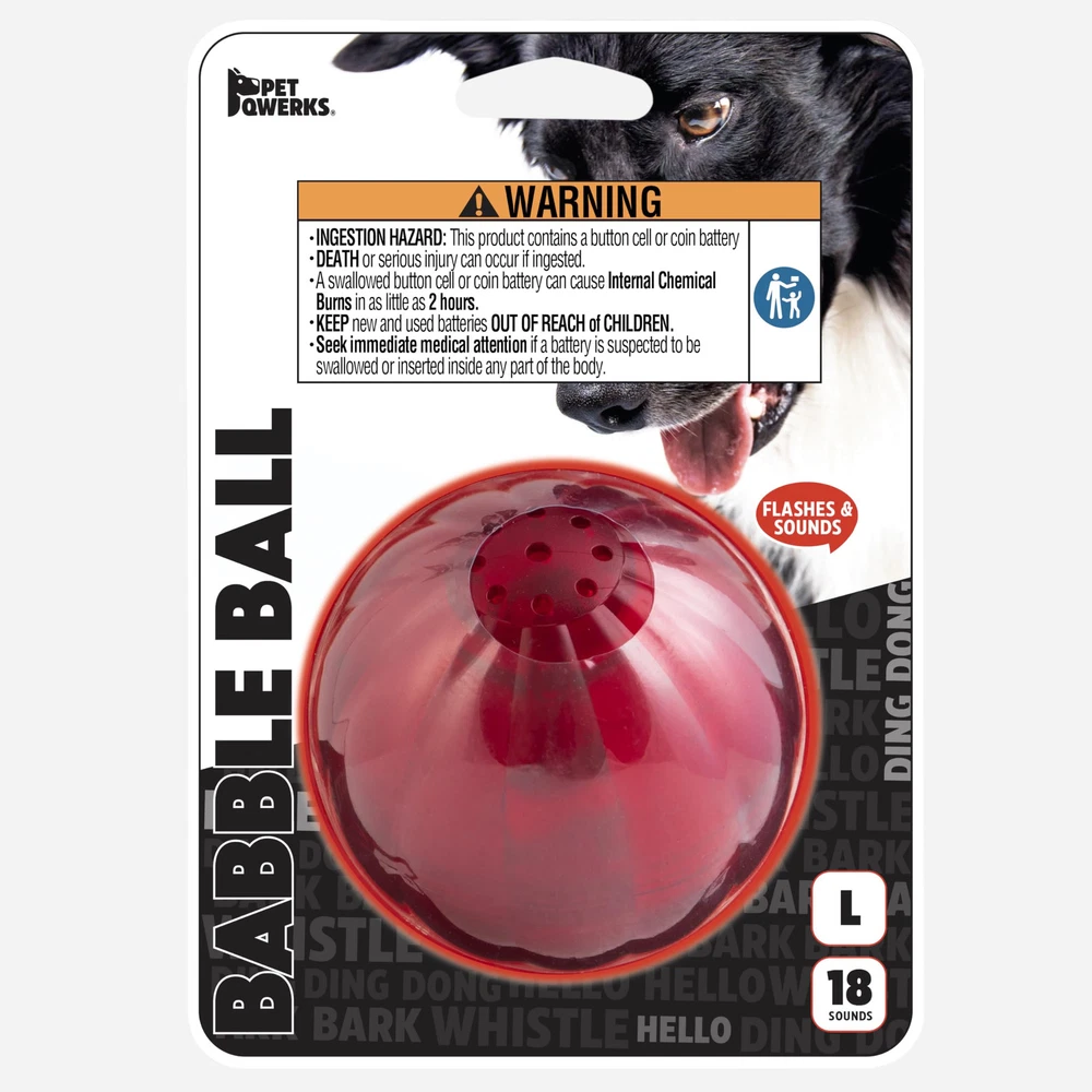 ® Blinky Babble Balls® are fun and interesting dog toys that appeal to your playful pup's animal instincts with playful banter and bright, blinking lights. As your pet breathes on it or walks past it, the bright light starts blinking and playful banter ensues, demanding playtime by enticing your dog. Blinky Babble Balls are available in three sizes and are made from high-impact ABS construction that can stand up to your tiny teacup to your goliath Great Dane. Each ball makes 18 different sounds that range from wisecracks to whistles, barks, Hello's, and many more. When your dog is done, the Babble Ball turns itself off until the next swat or chomp. Interactive Dog Toy: The Blinky Babble Ball is motion activated, flashes and makes sounds; A great self amusement toy for all dogs and ideal for pets that are blind or have poor vision; Large size for dogs over 25 pounds Keep Them Busy: As your pet breathes on it or walks past it, the bright light starts blinking and playful banter ensues, demanding playtime by enticing your dog; Each ball makes 18 different sounds Healthy Outlet: Helps reduce anxiety and prevents boredom by encouraging them to actively play; when your dog is done playing, it will turn itself off Strong And Durable: Made with high impact ABS construction. From your tiny teacup to your goliath Great Dane; A long lasting toy to keep your dog active Just For Pets: Petmate makes a variety of pet products for dogs, cats, birds, and other furry friends; Check out our brands such as Aspen Pet, Arm & Hammer, Booda, Chuckit, and more