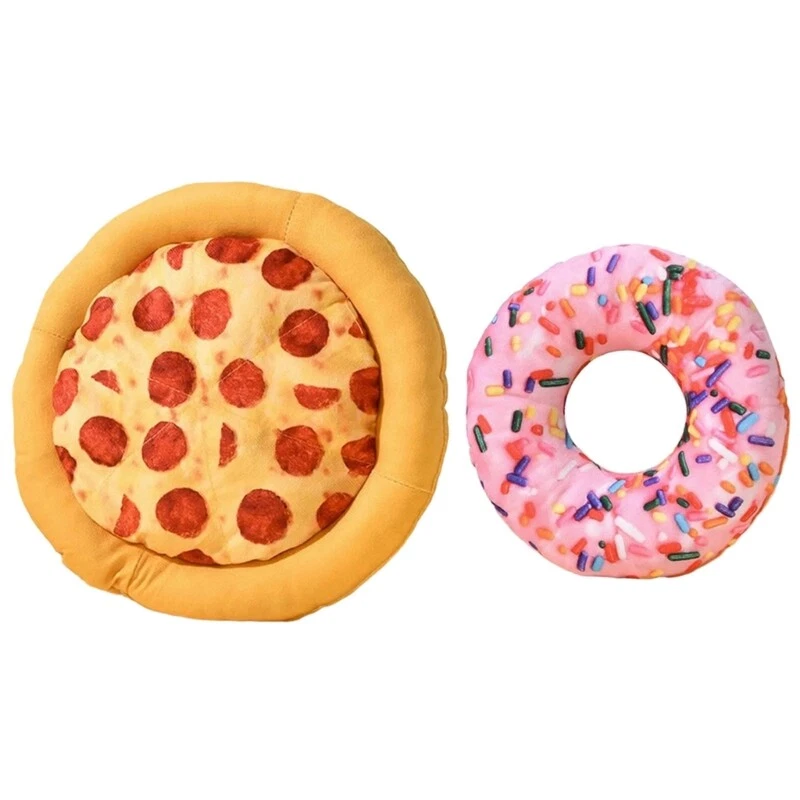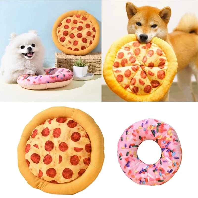 Features: Foster a deep connection with dogs through the dogs toy realistic sound, promoting relation between you and your dogs. Soft material, this dog toy is kind to your dogs teeth while providing entertainment with its stuffing structure and sound device. Suitable for small to dogs and cats, this durablity toy is for dogs who enjoy engaging play. Whether indoor/ outdoor, during training/ indoor, this dog toy offer fun and exercise opportunities for your dogs. Enhances your dogs play with the dogs toy, stimulating their interest, encouraging physical activity, and bringing happiness to dogs. Specifications: Plush Diameter: Pizza: 23.50cm/ 9.25in Doughnut: 22cm/ 8.66in Type: Pizza, Doughnuts Package Includes: 1pc Pet Squeaky Toy note: 1: Please allow 1-2cms errors due to manual measurement, ensure that you not mind before your order. 2: Due to the differences between different monitors, the picture may not reflect the item's actual color.