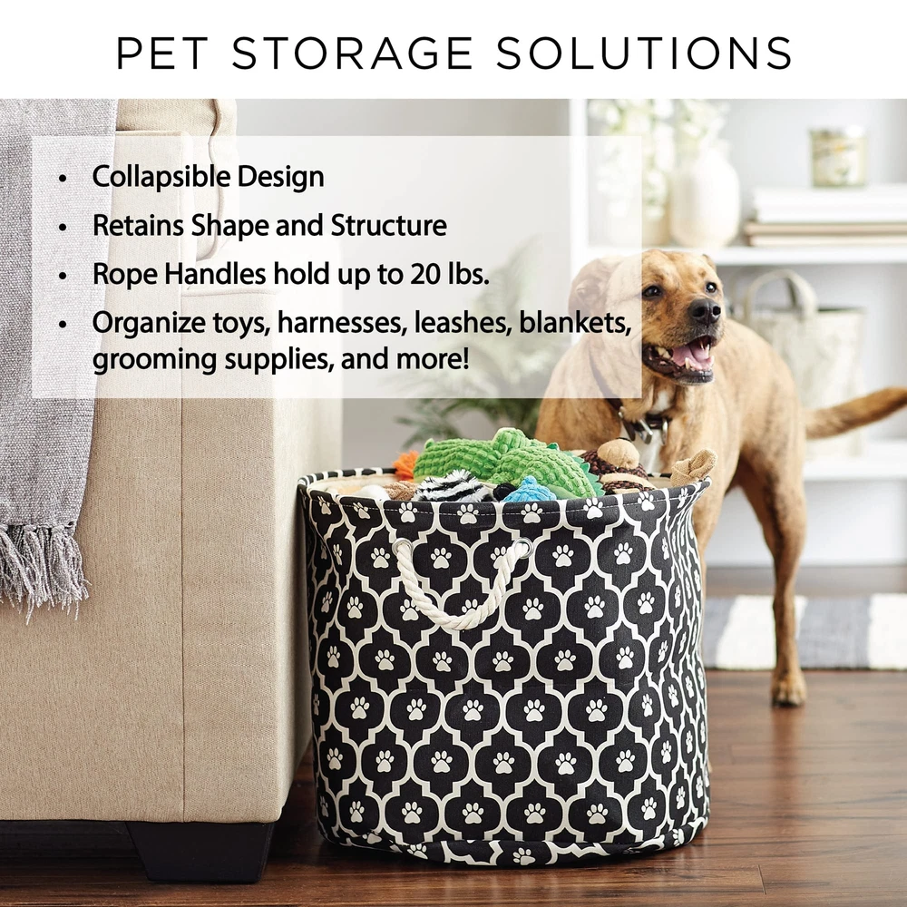 All pet products have your pet's comfort and in mind. Pamper your pets with our quality pet storage items, towels, blankets, pet mats and beds, bowls, treat canisters and more! MEDIUM ROUND BIN: Measures 12 x 15 x 15", the storage basket stands upright and the convenient handles make it easy to transport or move when needed. Simply collapse bin and when not in use. Holds up to approximately 20 lbs (9 kg). MATERIAL AND CARE: 100% Polyester, durable and long-lasting use. Wipe clean with a damp cloth. CUTE AND STYLISH FOR ANY ENVIRONMENT: The refreshing design and subtle texture of these baskets makes them great decor pieces for your home, pet-lovers or new pet owners ORGANIZATIONAL SOLUTION FOR THE HOME: Perfect for holding dry dog treats, leashes, collars, toys, blankets, outfits, grooming supplies and more! MORE PET STORAGE OPTIONS: offers various pet products including pet bed, pet towels, pet mats, pet bowls & blankets, and storage bin. For more options, search or click the link at the top.