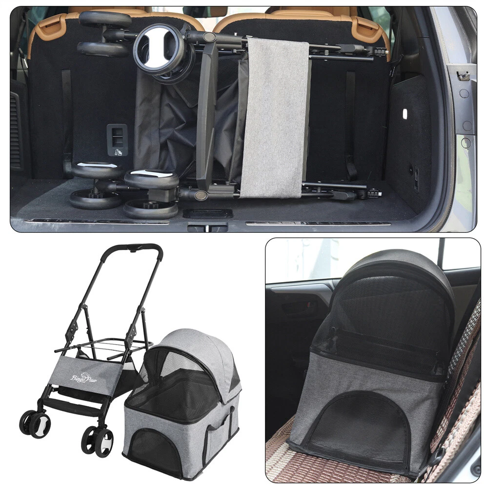 Pet Stroller 4 Wheels Dog Cat Stroller for Small Medium Puppy Dogs Cats Foldable Pet Stroller 4 Wheels Dog Cat Stroller for Small Medium Puppy Dogs Cats Foldable US SELLER FAST SHIPPING! Features: 【Detachable Foldable】Well made luxury pet stroller carrier is detachable, easily detach it from steel frame and can used as car seat. Two straps on both sides for easy carry. Designed one-hand fold mechanism on the handle, easy to push, enable you can fold it flat within minutes compactly to fit in car trunk for travels, with hook on the side to fix it well. Specifications: Material: 600D Linen Fabric + EVA (wheel) + Steel Pipe Color: Grey Net Weight: 7.1 kg Weight Capacity: within 30 kg / 66lbs Product Dimension: L x H 50.5 x 77.8 x 99.5 cm / 19.88 x 30.63 x 39.17 inch Pet Carrier Size: 39.5 x 54 x 62 cm / 15.55 x 21.26 x 24.4 inch Package Size: 75 x 44 x 19.5 cm / 29.5 x 17.3 x 7.7 inch Package Weight: 8.03 kg Package Included: 1 x Cat Stroller 1 x Waterproof Cover 1 x Instruction Guide Payment Delivery details Terms of sales About us Contact us Payment Delivery details We ship orders within 24 hours of payment. Orders are shipped daily Monday - Friday Orders are shipped through USPS and FedEx, normally take 3-6 days to arrive! Terms of sales Pls contact us if there is any problems with your order via ebay message. we will try our best to resolve it to your satisfaction! About us We are a store, mainly run home garden kitchen items, also, we are professional makeup case factory. We work with a good quality OEM supplier and factory. Help you and us save money greatly. Contact us If you have any questions or any helps, pls feel free to contact us via ebay message. We will reply back to you in 24 business hours. Brand BingoPaw Type 4-Wheel Pet Stroller MPN WIS8493HJ893 Features Detachable Carrier, Foldable, with Storage Basket, Shock Absorber, Internal Tether Dog Size S Model Pet Stroller Color Gray