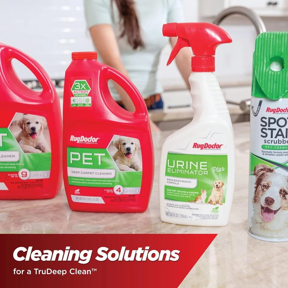Rug Doctor Pet TruDeep Carpet Cleaner, Pet Upholstery Tool, Best-In-Class Suction Power, Dual Brush Cross-Action Technology for One-Pass Cleaning, CRI Platinum Rated Shipping & Delivery Ships from the U.S. : All orders are shipped from our U.S. warehouse. Processing Time : Orders are processed and shipped within 3 business days (excluding weekends and holidays) after receiving your order. Delivery Time : Packages typically arrive within 3-4 business days, excluding remote areas . About this item 30% MORE SUCTION POWER* than comparable machines. This carpet and upholstery cleaner offers best-in-class suction power for superior results (*Tested against upright deep carpet cleaners measuring air watts pursuant to ASTM F558 at cleaner head). DUAL CROSS-ACTION BRUSH TECHNOLOGY: This Rug Doctor carpet cleaner machine features a patented vibrating brush that scrubs each fiber individually from every angle while a rolling brush cleans and grooms the carpet. PET UPHOLSTERY TOOL INCLUDED: For added versatility, the included pet upholstery tool traps pet hair and removes stains and odors from carpet, upholstery, stairs, mattresses, car seats, pet beds and more. SUPER BOOST SPRAY SETTING delivers an extra "boost" for cleaning heavily soiled and high-traffic areas.