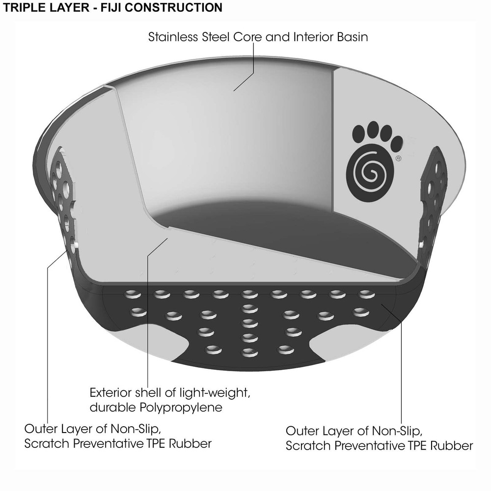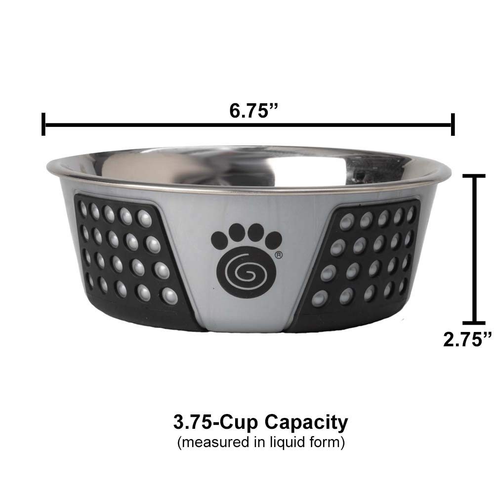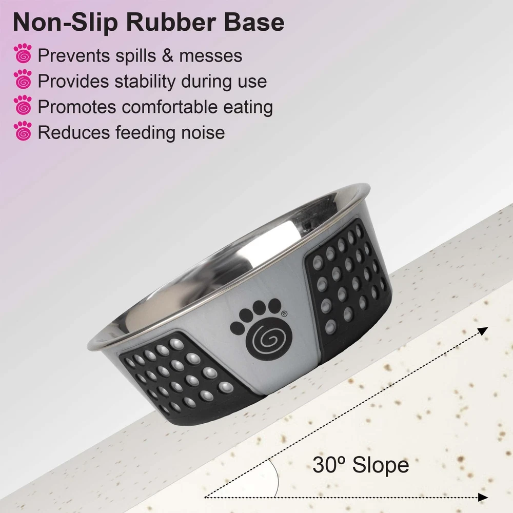 Durable, Lightweight and Convenient: Strong stainless steel inner core with lightweight TPE plastic shell is ideal dog bowl construction. Lightweight dog bowls alleviate stress on the pet owner and dishwasher safe material add to convenience Non-Skid and Non-Spill: Anti-slip rubberized bottom prevents slipping, securing the dog bowl in place while safeguarding your floors. Ideal for dogs and cats that are prone to nudging their food bowl or water bowl Decorative and Functional: Stainless steel dog bowls offer a non-porous feeding and watering surface that is easily maintained for healthier eating for dogs and cats. The outer plastic shell offers enhanced design to complement modern home décor Comfortable Design: Wide, rounded rim dog bowl provides an easier to handle object for pet owners while providing a safer edge for dog and cat tongues and faces Versatile: Our stainless steel bowls and feeders are ideal food and water bowls for dogs, cats, puppies, kittens and other household pets. Lightweight design allows more volume while adding less stress on pet owner’s joints
