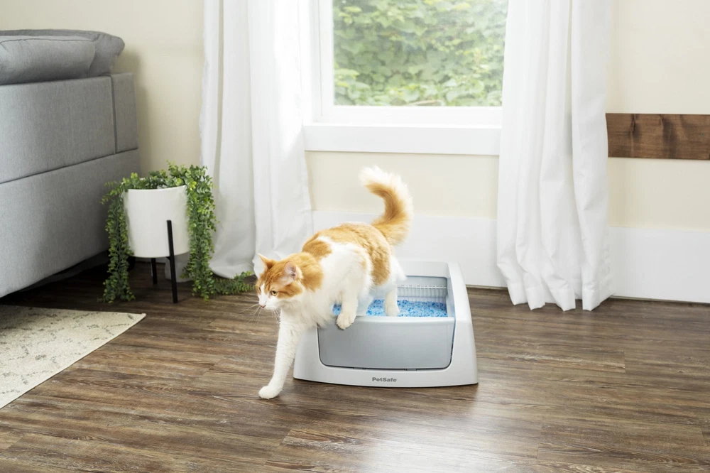 Strike scooping the litter box off your to-do list. With the ScoopFree® Crystal Classic Self-Cleaning Litter Box, there’s no scooping, cleaning or refilling your cat’s litter box for weeks. This litter box uses crystal litter which provides 5 times better odor control than traditional clumping litter. Crystal litter absorbs urine and dehydrates solid waste. This low-tracking litter also helps keep your floors clean because it is 99% dust free and doesn’t stick to your cat’s paws. Safety sensors make sure that the scooping cycle only occurs when your cat is out of the box. The disposable trays have a plastic lining to help protect against leaking, and each tray comes with a lid for quick and easy disposal—simply remove the tray and throw it away. PetSafe® brand is here to help you and your pet live happy together™. On Oct 25, 2024 at 05:12:12 PDT, seller added the following information: