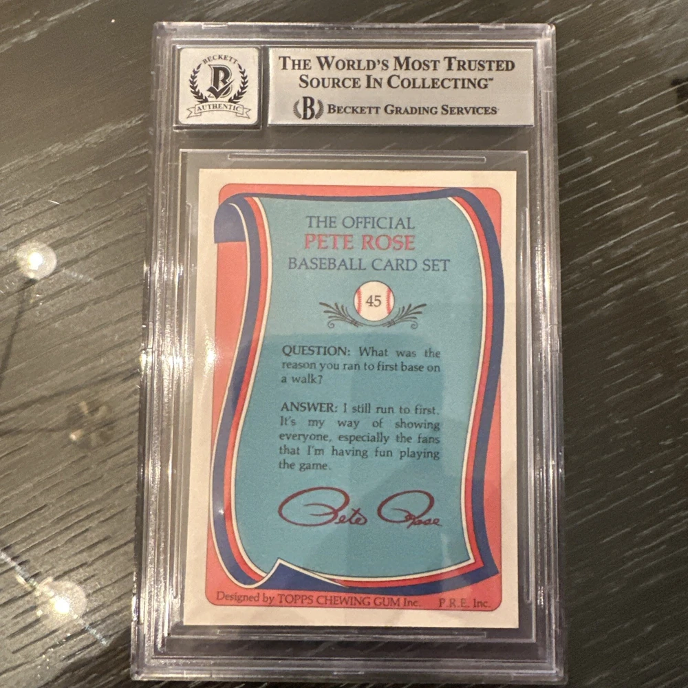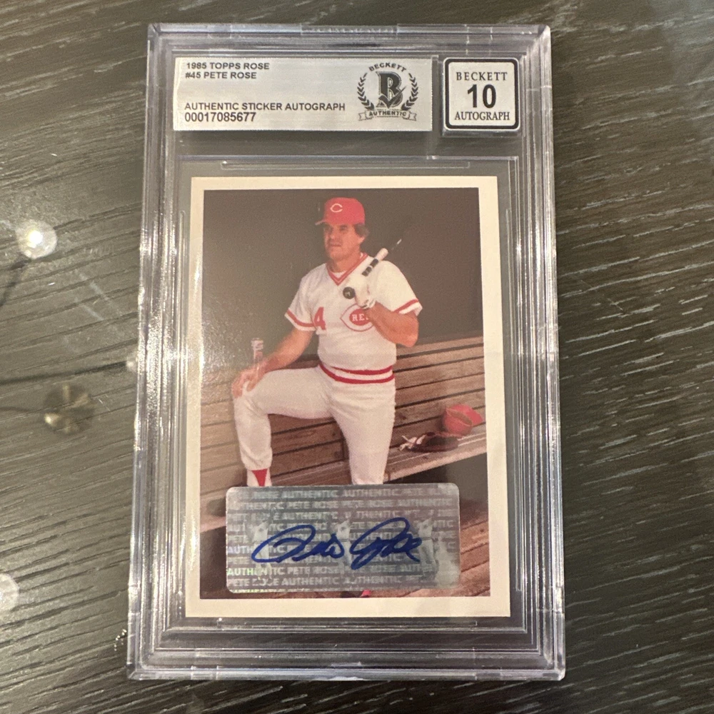 Capture a slice of baseball history with the Pete Rose 1985 Topps #45 card, complete with his signature and a perfect 10 rating from Beckett Grading Services (BGS). This card celebrates the legendary Cincinnati Reds player, commemorating his impressive career with a piece of memorabilia that's as pristine as it is coveted. As part of the iconic 1985 Topps Base Set, this card is a must-have for collectors and fans alike. It's not just a trading card; it's a tangible piece of the sport's rich tapestry, featuring one of Major League Baseball's most celebrated athletes. Whether for your personal collection or as a treasured gift, this card stands out as a tribute to an iconic era in baseball.
