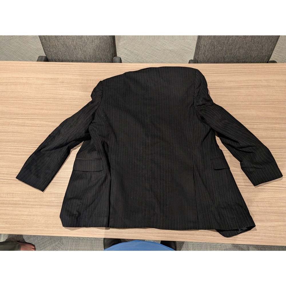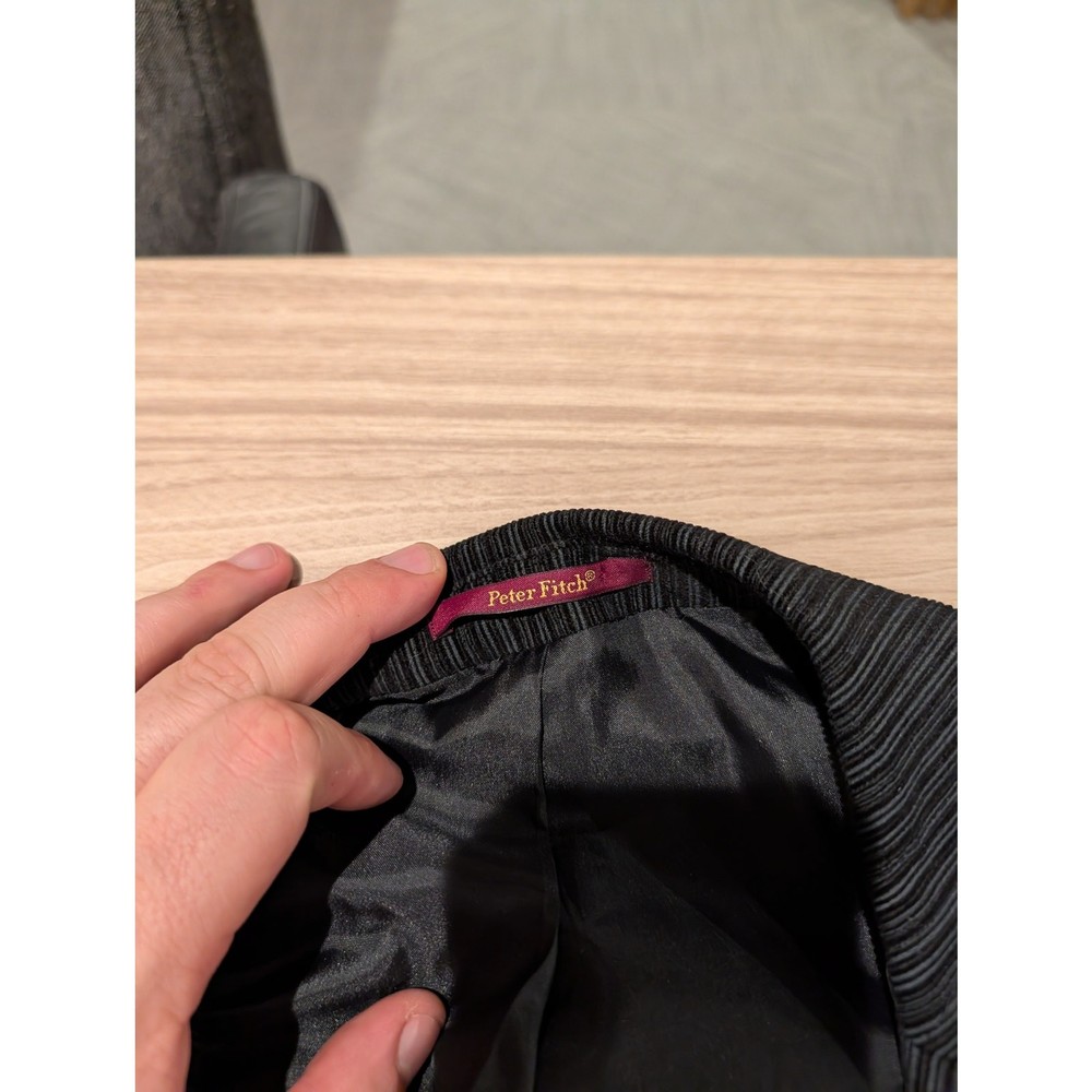 Add a touch of textured sophistication to your wardrobe with this Peter Fitch corduroy sport coat. Featuring a classic ribbed "wale" in a deep jet black, this blazer offers a perfect blend of durability and timeless style. The corduroy fabric provides a soft, tactile feel while maintaining a structured silhouette, making it an ideal choice for fall and winter layering. Whether you're heading to the office, a casual dinner, or looking to complete a vintage-inspired look, this jacket is a versatile staple. Brand: Peter Fitch Style: Two-Button Sport Coat / Blazer Color: Black Material: Ribbed Corduroy (Cotton/Blend) Size: Men's 42 Features: Notched lapel, front flap pockets, and a smooth interior lining. Condition: Pre-owned / Excellent Condition. See photos for details. Please Note: Please review all images carefully to evaluate the corduroy nap (texture) and ensure there are no signs of wear at the elbows or cuffs.