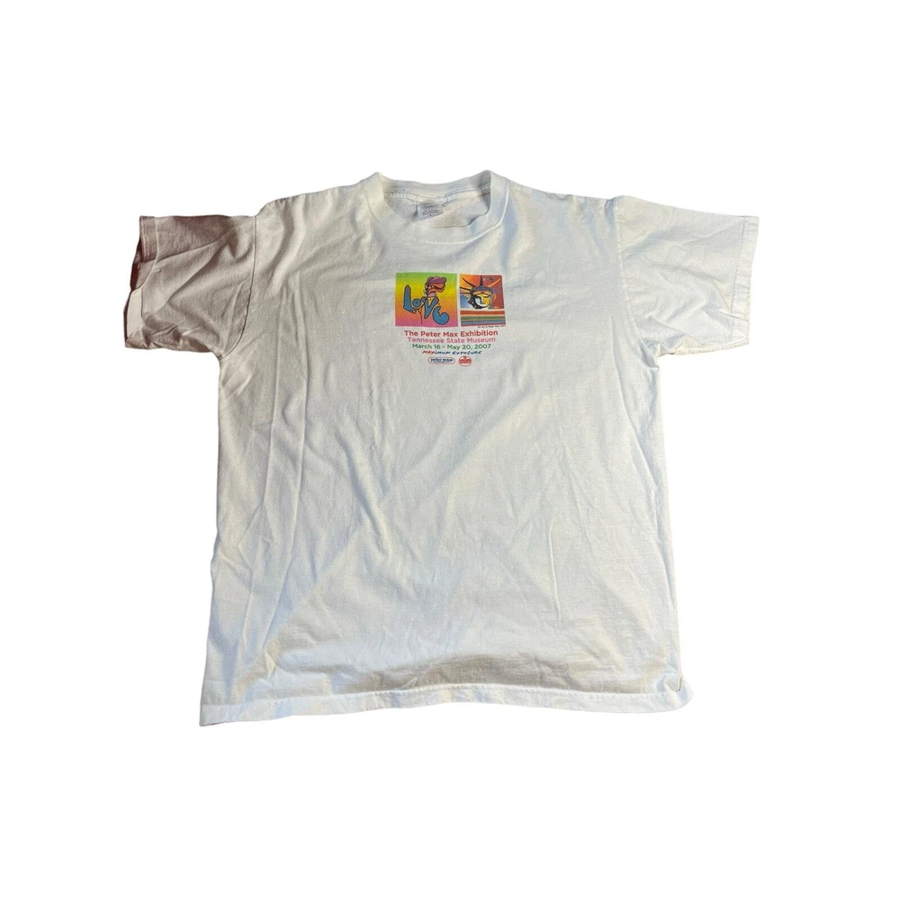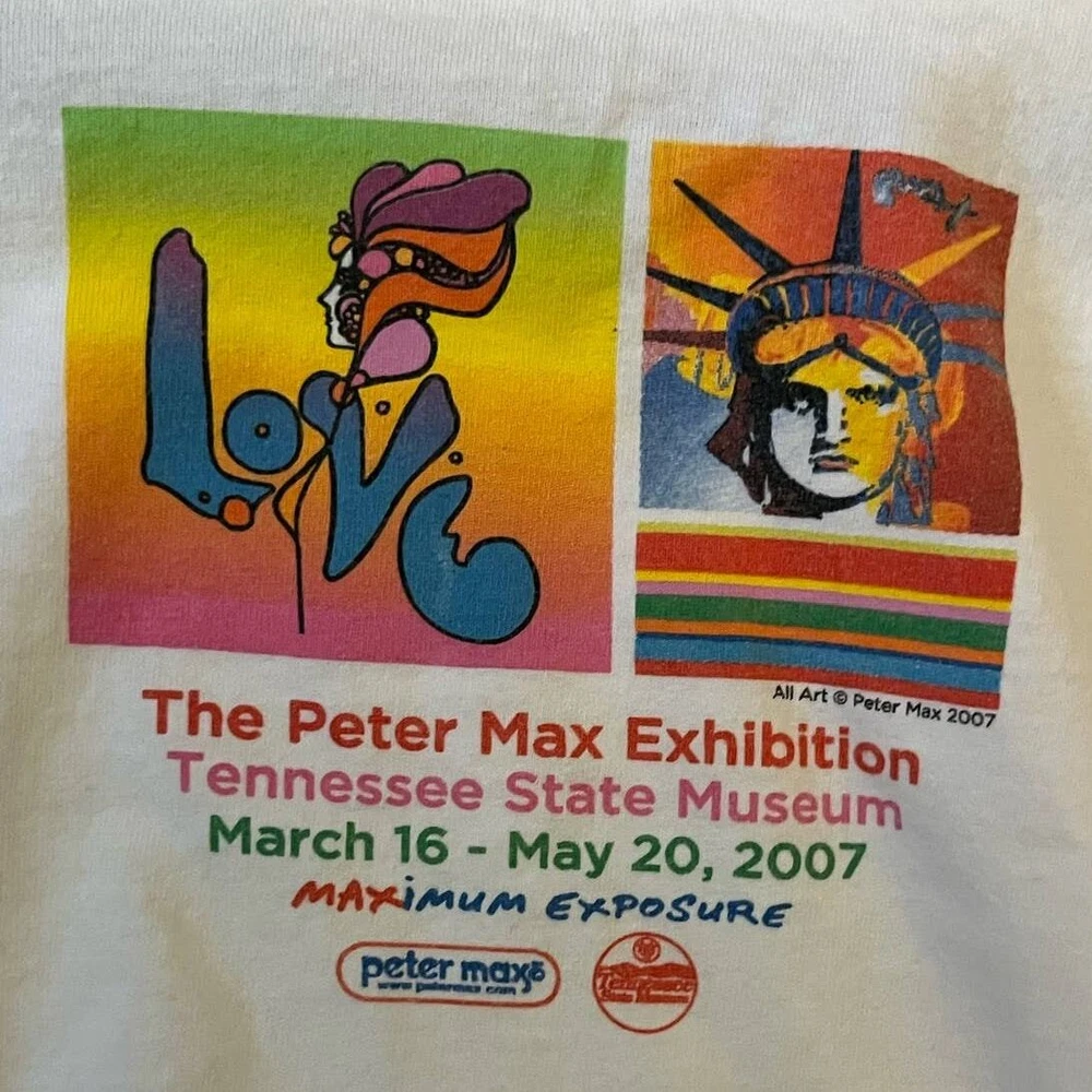 Preowned Peter Max Limited Edition T shirt Tennessee State Museum 2007 Size L Pre-shrunk 100% cotton This t shirt was worn by the staff of the Peter Max collection. It is an official Peter Max Licensed Product Pictures include Love and the Statue of Liberty The Peter Max Exhibition Tennessee State Museum March 16-May 20, 2007 Maximum Exposure