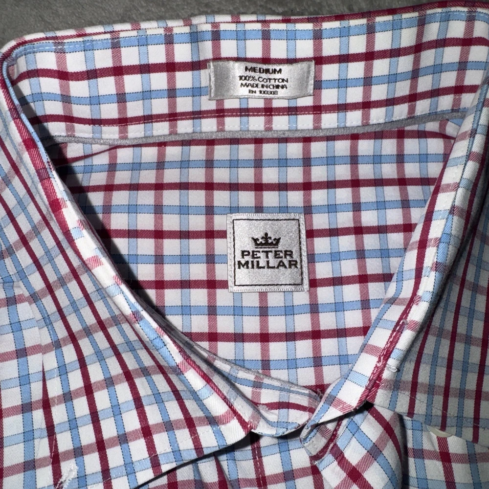 Elevate your wardrobe with this stylish Peter Millar shirt, perfect for any occasion. The multicolor check pattern adds a touch of preppy flair, while the collared neckline and button-up closure create a sophisticated look. Designed with travel, casual, and business in mind, this shirt is versatile and comfortable, made from a combination of nylon and spandex for a lightweight, stretchy feel. The long sleeves and regular fit make it suitable for all seasons, with easy care and wrinkle-resistant features for convenience. This shirt is machine washable and quick-drying, making it perfect for any on-the-go lifestyle. Don't miss out on the opportunity to add this Peter Millar Summer Comfort shirt to your collection.