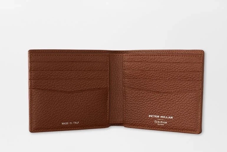 This billfold wallet is made in Italy from select pieces of a luxurious Serapian-exclusive tumbled leather as soft and smooth as the finest cashmere. The interior features eight card slots and convenient pockets for your currency and receipts. Details 100% tumbled calfskin leather billfold Eight card slots, two bill sleeves Dimensions: 4.5” wide, 4” tall, 1” deep Made in Italy