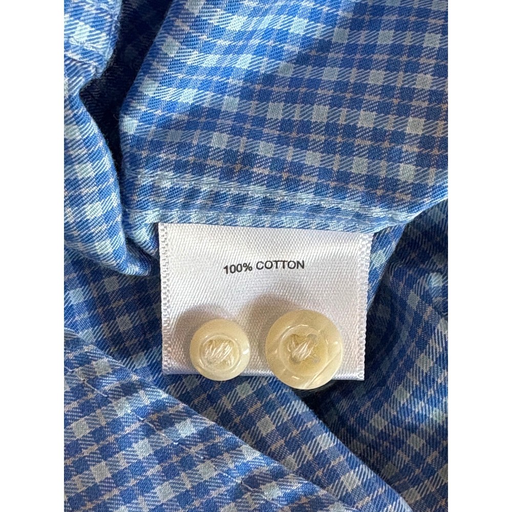 A classic blue gingham button-down shirt. This long-sleeved woven shirt offers a comfortable and stylish option for various occasions. Its timeless pattern and quality construction make it a versatile addition to any wardrobe. Perfect for a smart casual office day, a weekend brunch, or a relaxed evening out. Department: Men Sleeve Length: Long Sleeve Pattern: Gingham Type: Dress Shirt Collar Style: Button-Down Material: 100% Cotton Top Cuff Style: Barrel Cuff Features: Non-Iron Neckline: Collared Length: 29" Pit-to-Pit: 26" Keywords: Peter Millar, Mens Shirt, Dress Shirt, Button Down, Long Sleeve, Gingham, Blue, Cotton, XL, Men's Fashion, Casual Shirt, Smart Casual, Preppy Style, Work Shirt, Weekend Wear