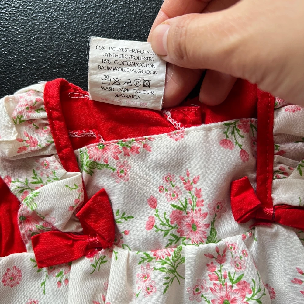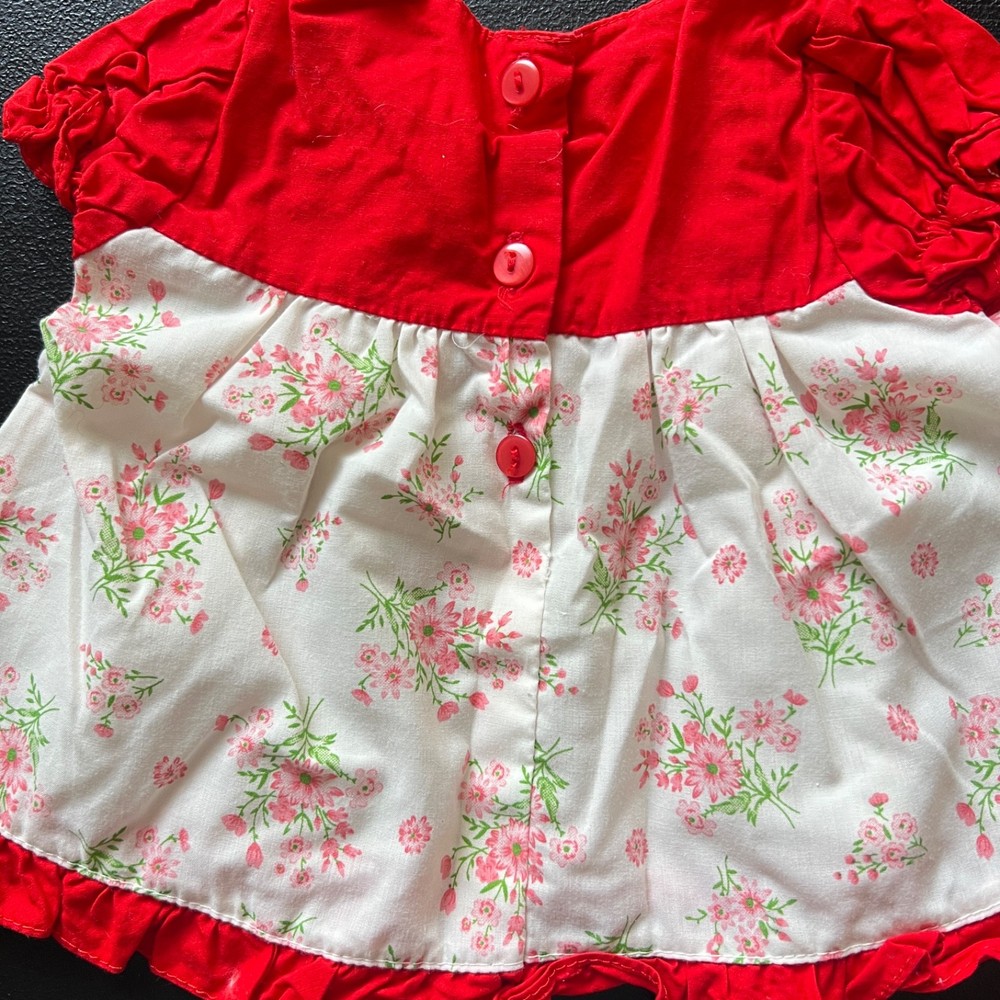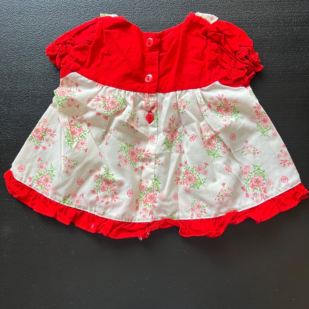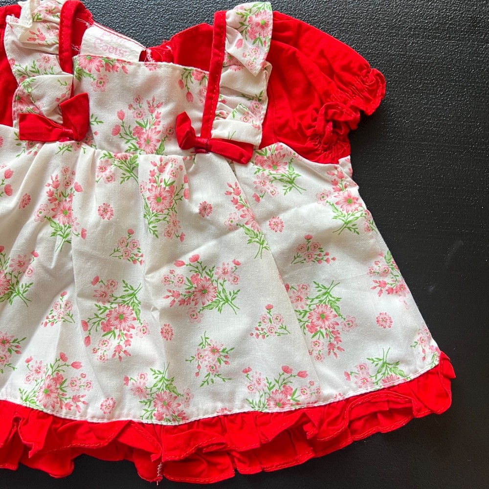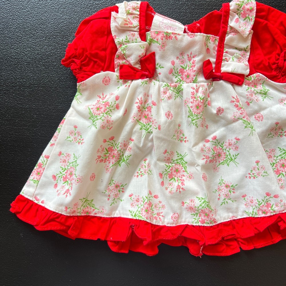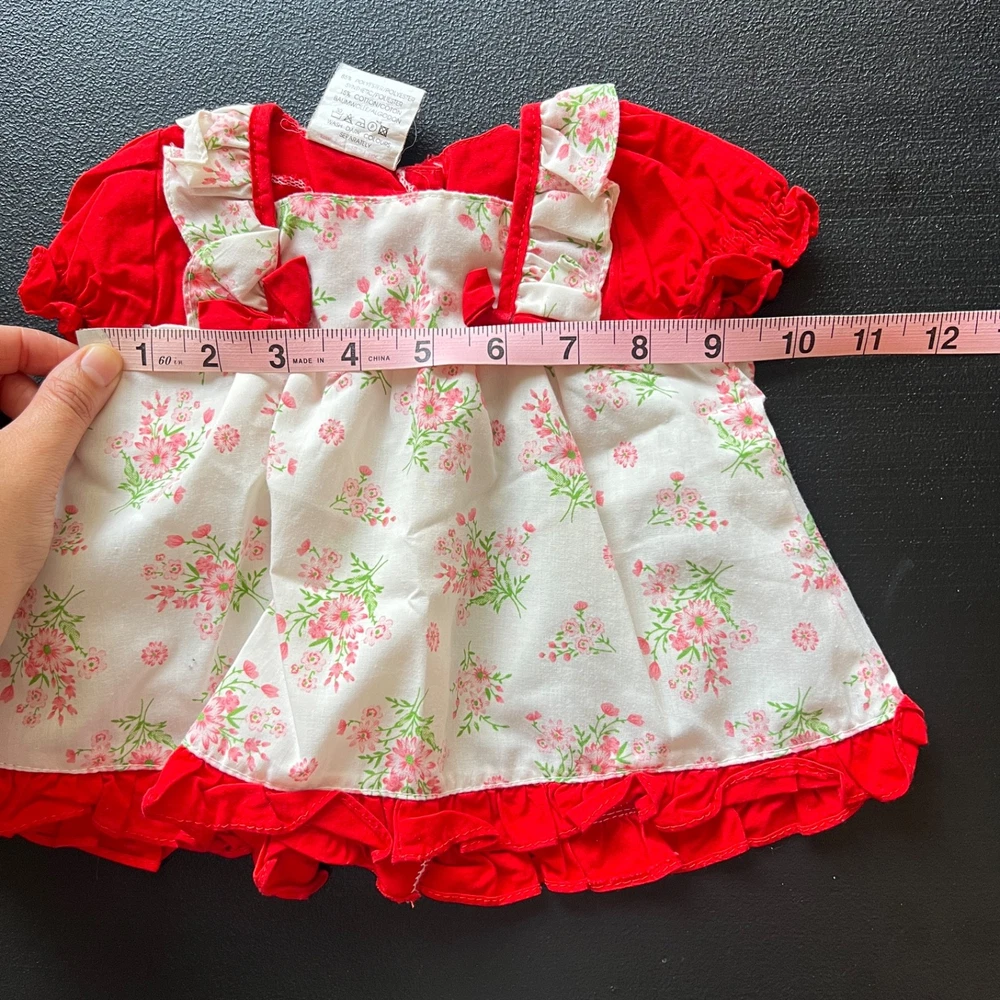 Petit Coeur Baby Floral Cottagecore Dress Red Ruffle Bow Prairie Style 0-3Months