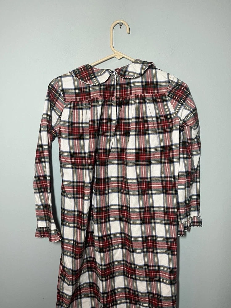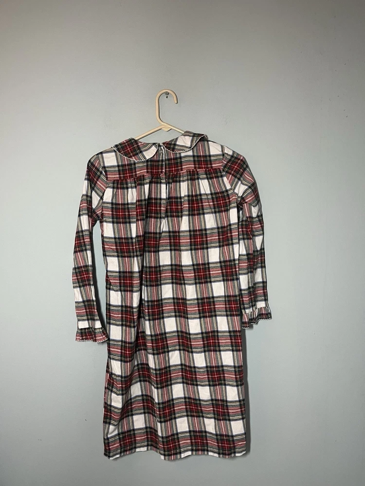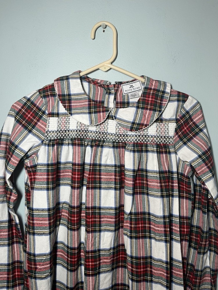 The Petite Plume Plaid Holiday Flannel Nightgown is a cozy and festive sleepwear option for girls size 12. The long-sleeve gown features a collared neckline and is made from a soft cotton blend flannel fabric, perfect for keeping your little one warm on winter nights. The multicolor plaid design adds a playful touch to the cottagecore aesthetic, making it an adorable choice for holiday celebrations or just snuggling up at home.