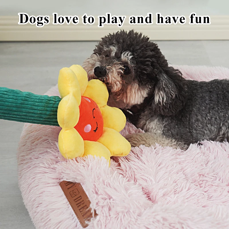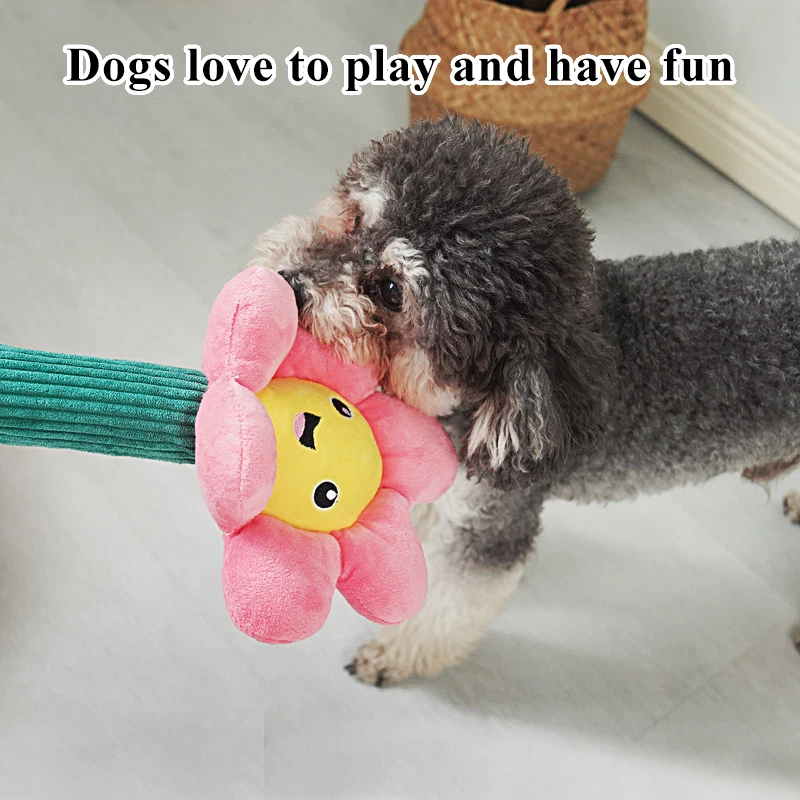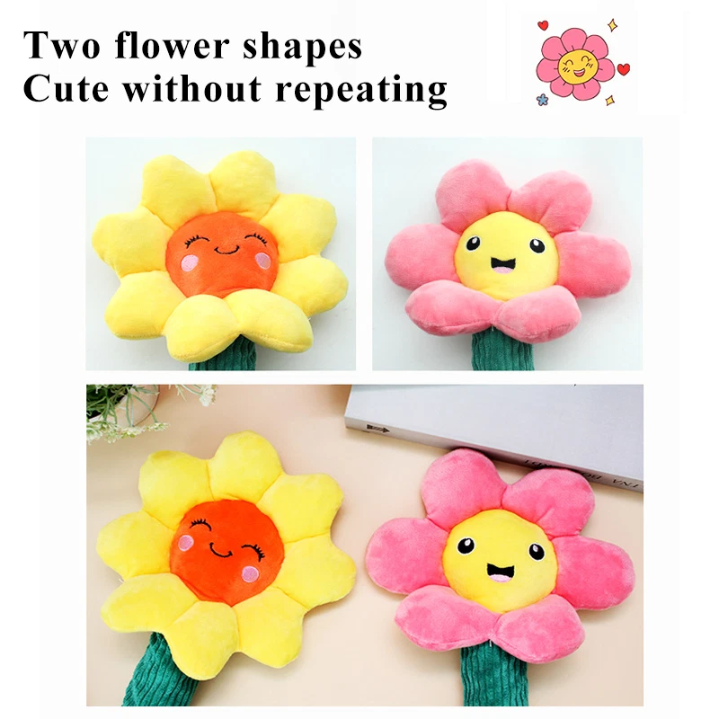 FLOWER DOG TOY Happy smiley flower, fun squeaky toy Product information Size: about 95cm / Weight: 115g Materials: Super Soft, Soundable Paper, PP Cotton, Foam Features: Safe and non-toxic material, fun to play with dogs, enhance the relationship Dogs love to play and have fun Happiness overflowing with joy smiley flowers Two flower shapes Cute without repeating