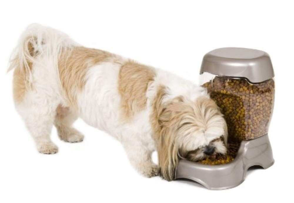 Petmate Café Gravity Pet Feeder Dry Food Dispenser Station for Dogs, Holds 12 lb, Pearl Tan - AUTOMATIC REFILLS: Petmate's Pet Cafe cat and dog feeder features gravity feed technology to dispense dry food as pets empty the bowl, prolonging time between refills FOR BUSY PET PARENTS: For pet parents with busy lifestyles, this automatic dog feeder ensures pets will have access to plenty of dry food EASY TO CLEAN: Dog and cat food dispenser features a wide-mouth bottle that is easy to remove from the base for convenient hand-washing EASY-SNAP LID: To load food into the top of the Petmate pet feeder, simply remove the easy-snap lid from the storage feeder STURDY, SPILL-FREE FOOD STATION: Easy-grab cutouts allow pet parents to easily lift the cat and dog food dispenser without spilling Petmate Café Gravity Pet Feeder Dry Food Dispenser Station for Dogs, Holds 12 lb, Pearl Tan - AUTOMATIC REFILLS: Petmate's Pet Cafe cat and dog feeder features gravity feed technology to dispense dry food as pets empty the bowl, prolonging time between refills FOR BUSY PET PARENTS: For pet parents with busy lifestyles, this automatic dog feeder ensures pets will have access to plenty of dry food EASY TO CLEAN: Dog and cat food dispenser features a wide-mouth bottle that is easy to remove from the base for convenient hand-washing EASY-SNAP LID: To load food into the top of the Petmate pet feeder, simply remove the easy-snap lid from the storage feeder STURDY, SPILL-FREE FOOD STATION: Easy-grab cutouts allow pet parents to easily lift the cat and dog food dispenser without spilling MULTI-PET HOUSEHOLDS: Pet food dispenser is available in a 6-pound capacity to accommodate multi-pet households and pets of all sizes PEARLESCENT COLORS: Dog and cat automatic feeder is available in a variety of pearlescent colors to complement any room of the home Petmate Café Gravity Pet Feeder Dry Food Dispenser Station for Dogs, Holds 12 lb, Pearl Tan - Make feeding time easy and save time with the Petmate® Pet Café Feeder. This stylishly designed gravity feeder replenishes the food reservoir when levels get low. Features a food storage hopper with an extra-wide mouth and removable lid making the Pet Café Feeder easy to clean and refill. Automatically refills reservoir when needed. The base features easy-grab handles making the feeder easy to maneuver. Uses more environmentally sustainable PET vs. PVC Bottles. Pet parents choose from an assortment of sizes. Small: 3 lb capacity; Medium: 6 lb capacity; Large: 12 lb capacity. On Jul 22, 2025 at 22:25:21 PDT, seller added the following information:
