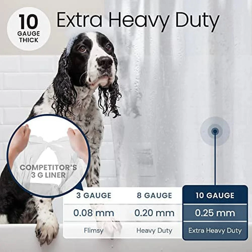 LiBa Bathroom Shower Curtain - Waterproof Plastic Shower Curtain Premium PEVA Non-Toxic with Rust Proof Grommets 10G Heavy Duty Bathroom Accessories 72x72 WATERPROOF SHOWER CURATAIN - Ultra smooth specialty design of LiBa shower curtain liners created to roll off the water and to promote water bead formation so water swiftly rolls off the surface, keeping your bathroom dry and clean. With 3 timeless color options to choose from, use it as a stand-alone curtain for a bright & airy atmosphere, or pair it with your favorite fabric shower curtain. CONVENIENT & DURABLE - LiBa clear shower liner is sturdy with rustproof metal grommets and reinforced header. Three heavy-duty magnets on the bottom keep the curtain in place- and away from your body. Features 12 rust-proof metal grommets and a reinforced header that prevents tearing and ensures long-term functionality. This curtain liner is a bathroom essential. ENVIRONMENTALLY-FRIENDLY- Made with 100% high quality and eco-friendly PEVA material. Free of PVC & chlorine, which means no unpleasant plastic smell. Containing significantly less volatile organic compounds than PVC liners, LiBa PEVA shower liner is certainly the better choice for you and your family’s health! CLEAN & ELEGANT DESIGN - LiBa plastic shower curtain fits any standard-size shower or tub, whether you have a straight or curved shower rod! High-quality transparent design allows light through, brightening up your bathroom and making it looks clean. Our clear shower curtain liner is a breeze to wipe clean, and takes less time and energy! #1 RECOMMENDED SHOWER LINER - Recommended by major news publications like Today, Yahoo Life, Women’s Health, and more! We go the extra distance to ensure our shower curtain liners rise above the rest.LiBa shower curtain liners are designed to last. We will issue a replacement if an item is defective or torn within a year. Please contact our friendly and professional USA customer support team for questions or concerns.