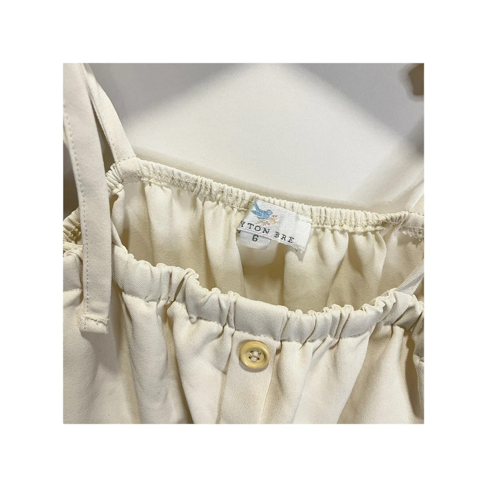 Style: Tunic Type: Blouse Features: Straps Department: Girls Neckline: Square Neck Brand: Peyton Bre Size: 6 Sleeve Length: Sleeveless Color: Ivory Pattern: Solid Accents: Button