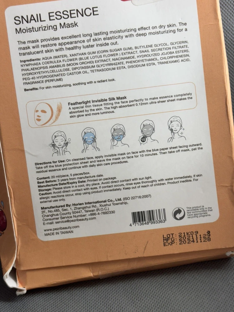 Pezri Snail Essence Moisturizing Mask 5 Masks
