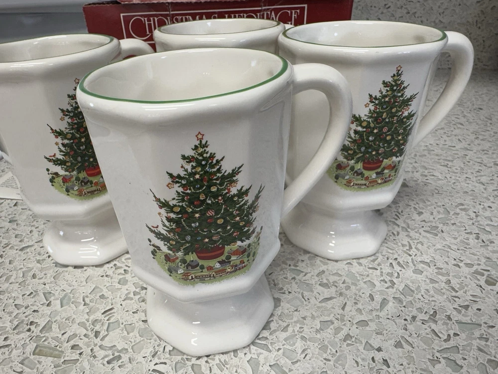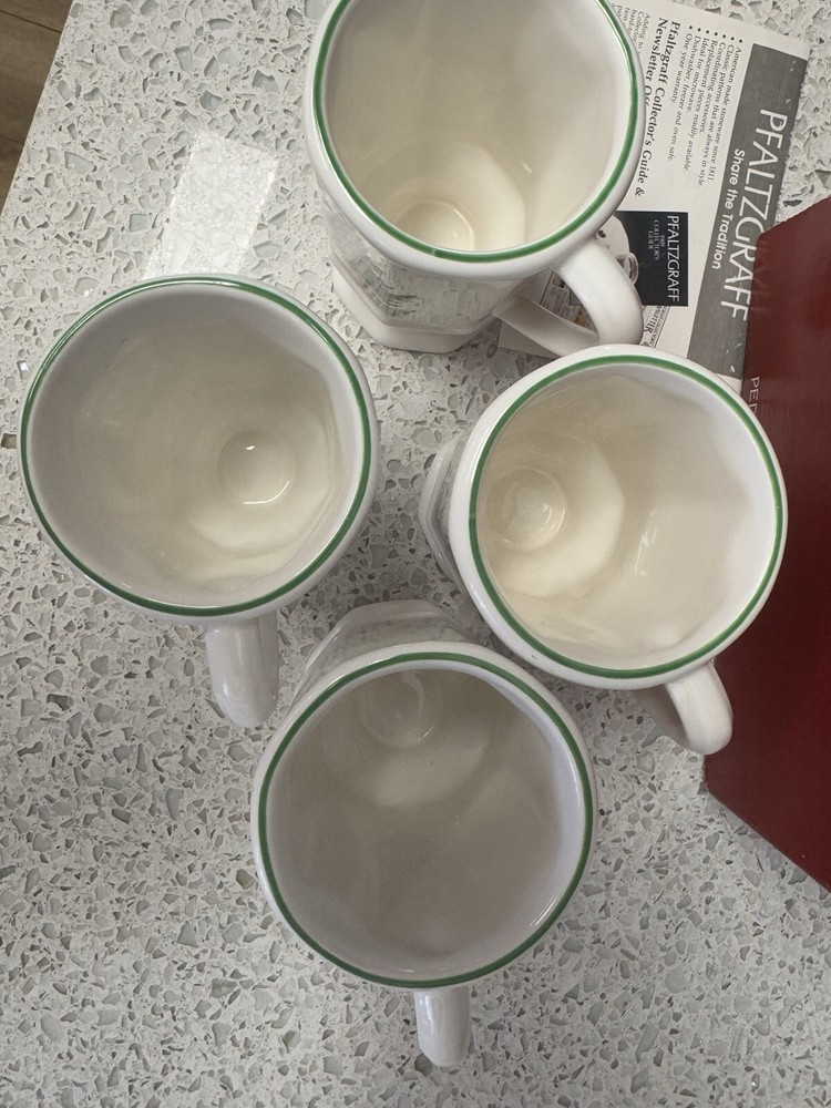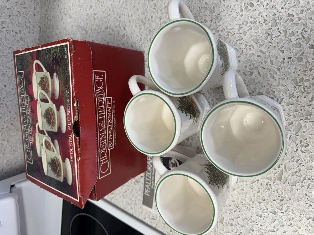 All four are excellent condition Celebrate the holiday season in style with this beautiful four-piece mug set from Pfaltzgraff's Christmas Heritage collection. Each mug stands at 5 inches tall and features a festive multi-color design that is perfect for any holiday occasion. Crafted from vintage original materials, these mugs are both durable and stylish. They are easy to clean and care for, making them a great addition to any kitchen or dining room. Whether you're enjoying your morning coffee or hosting a holiday party, these mugs are sure to impress. Add them to your collection today! Please see all photos Smoke Free Home Always happy to combine for shipping savings I also have three additonal of this pattern listed for individual purchase if you need more than four