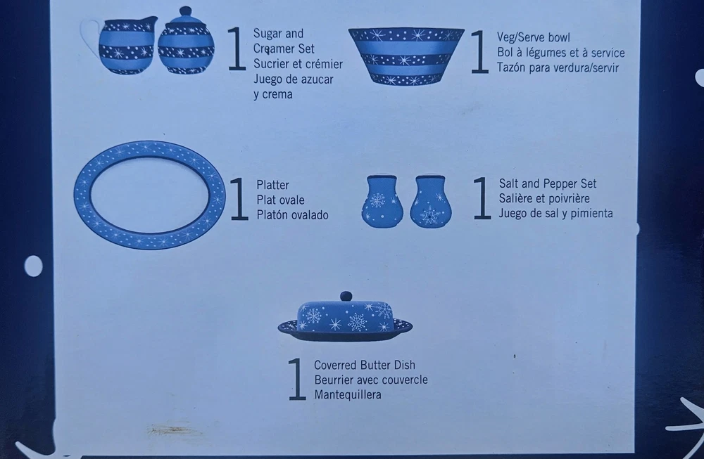 Pfaltzgraff Ice Crystals Accessory Set Complete NEW IN BOX Holiday Serving