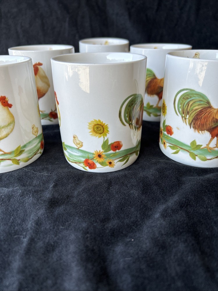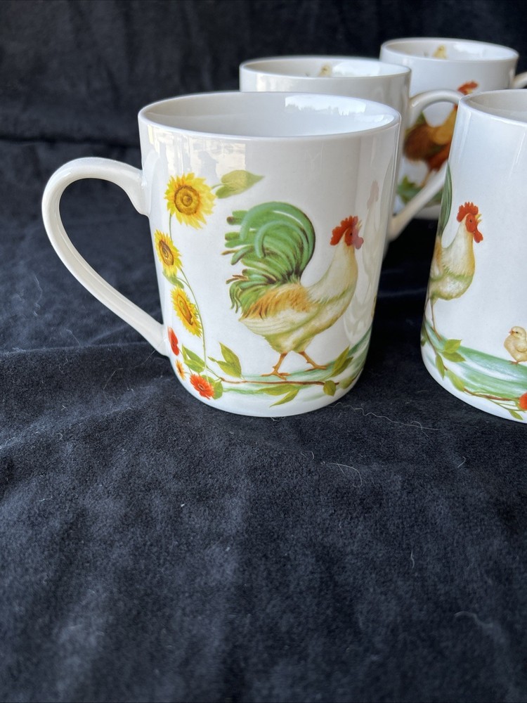 The Pfaltzgraff Rooster Meadow Coffee Mugs are a charming addition to any kitchen or dining area. These round ceramic mugs feature a multicolor design with a rooster and meadow theme, perfect for all occasions. The set includes six coffee mugs, each dishwasher safe for easy cleaning. Made by the brand Pfaltzgraff in China, these mugs are a delightful way to enjoy your favorite hot beverages with a touch of animal-themed whimsy. No chips