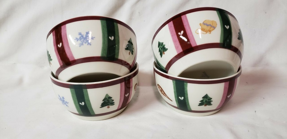 Set of 4 Pfaltzgraff snow bear collection bowls in like new condition. They measure 5 1/2" dia x 2 3/4" high and are decorated with mittens, christmas tree, snowflakes and snow skis. While you're here please check out my other snow bear listings as I do combine shipping.
