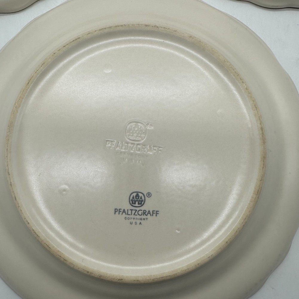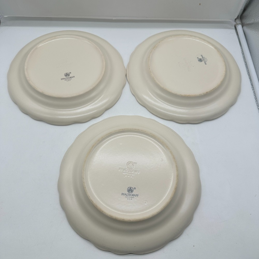 This product is a set of 3 Pfaltzgraff Tea Rose dinner plates, each measuring 10 1/2 inches wide. The plates feature a retired pattern and are made of stoneware in a multicolor design. The set includes dinner plates and is suitable for use in serving meals or as decorative cookware. Have been used Shows minor wear from use NO chips or cracks