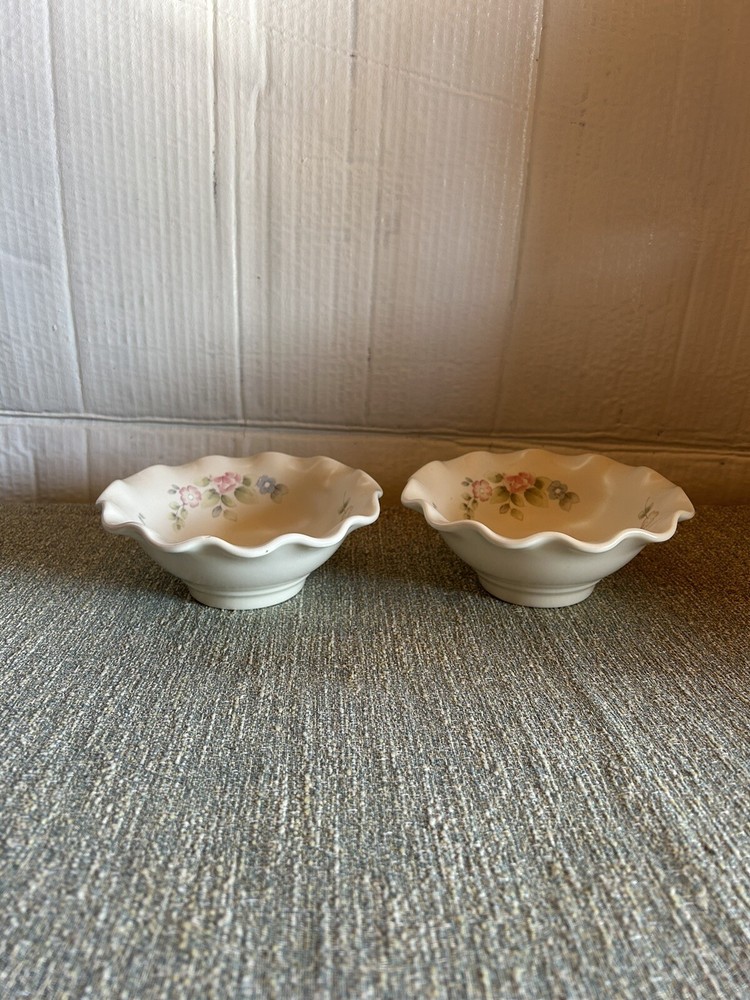 Pfaltzgraff Tea Rose Fluted Scalloped Pedestal Cereal Bowls 7 Inches Set Of 2. Condition is Used. Shipped with USPS Priority Mail. One bowl has a small chip showing in the pictures
