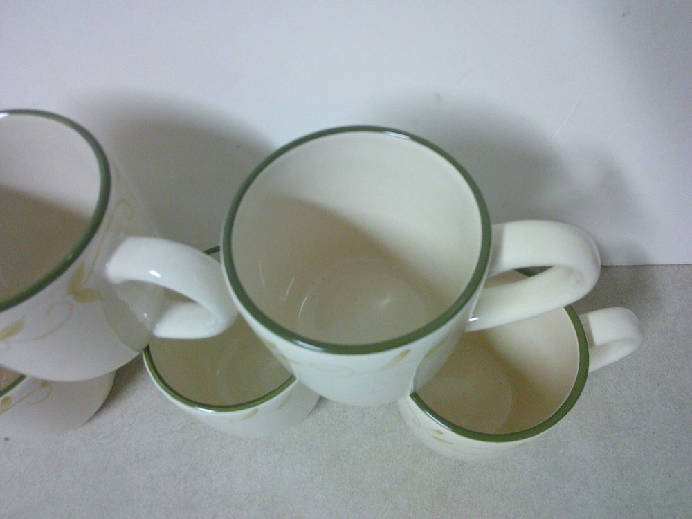 x5 Pfaltzgraff Traditions Sefton Park Green Trim Leaf & Vine Ceramic Coffee Mugs Pre-owned condition. Shows light use. No chips, cracks or crazing to the glaze. Measures 4" tall. Holds 12 fl oz. lot of 5 FREE SHIPPING! ***************************** PLEASE READ : I buy mostly estates, close outs, shelf pulls, and auction items. As the history of the item is not always known. I will describe all of my items listed to the best of my ability, if there are any flaws to the item it will be noted in the listing and photos of the flaw shown. At times I may miss a flaw, as I am only human. Please contact me and I will make it right and make sure that you are happy with you interaction and purchase from Big Man Tim's Treasures. Please see all photos and ask any qu estions BEFORE purchasing. Love this item? Check out the other items in my Ebay store! Please check back on a regular basis, as we list new items daily!! 060225EP warehouse