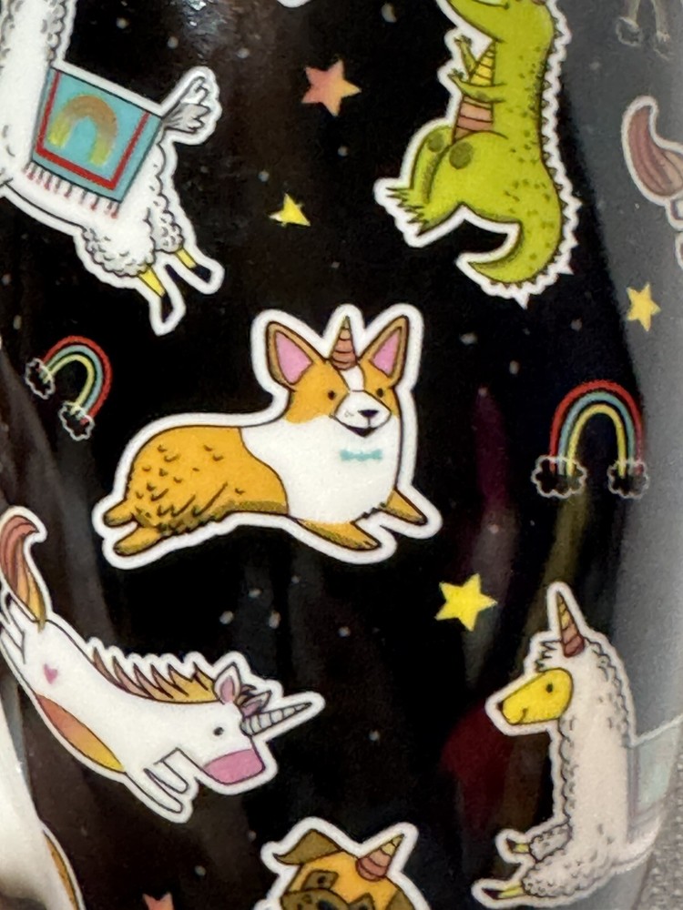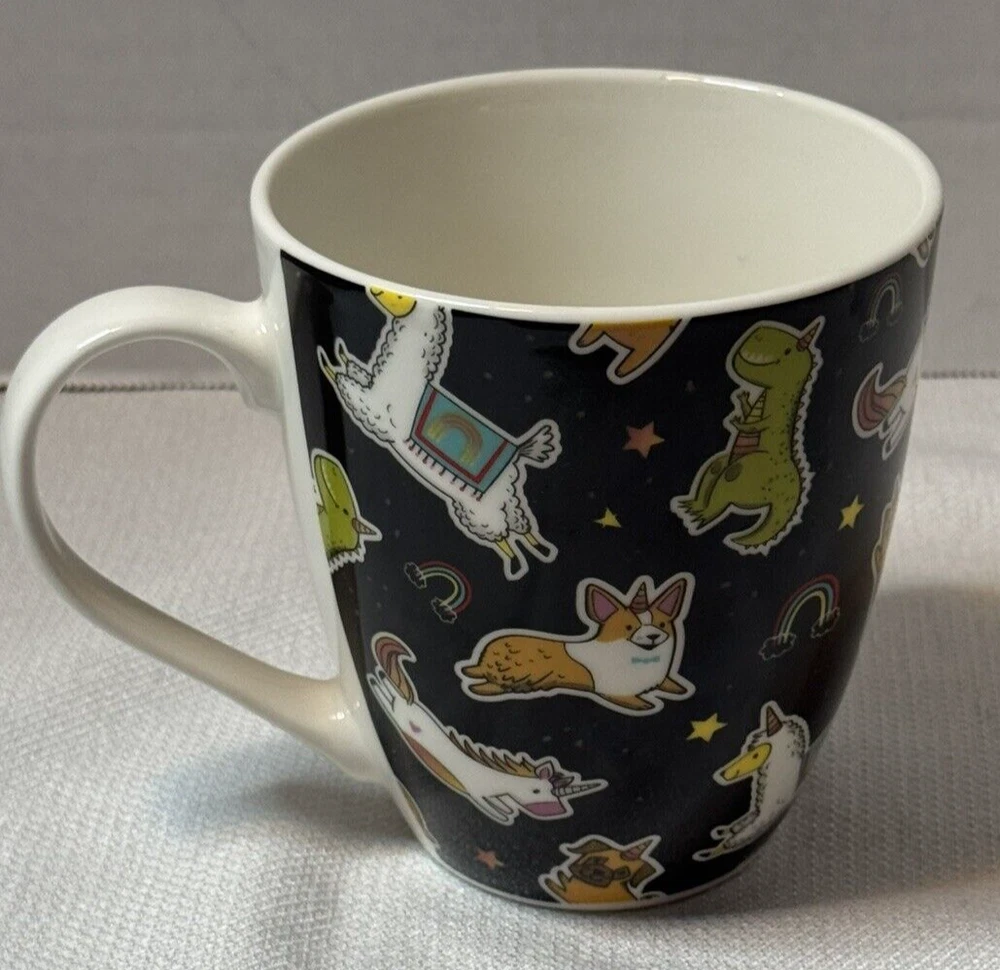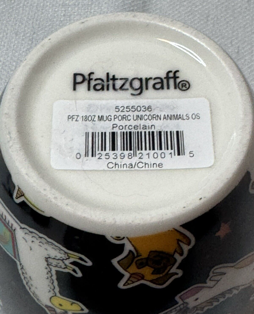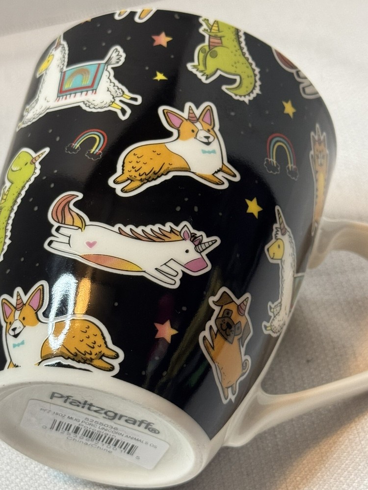 Sip your favorite beverage in style with this Pfaltzgraff porcelain coffee mug, featuring a playful and whimsical unicorn design that's sure to add a touch of magic to your day. The tapered shape and 18-ounce capacity make it perfect for your morning coffee or evening tea, and the sleek black color ensures it will complement any table setting. Designed with convenience in mind, this mug is both dishwasher and microwave safe, simplifying your daily routine. It stands at a comfortable height of 4.5 inches, making it easy to hold and enjoy your hot or cold beverage on any occasion. Whether it's for personal use or as a charming gift, this Pfaltzgraff mug is a delightful choice for anyone who loves a unicorn theme or simply appreciates a well-made cup.